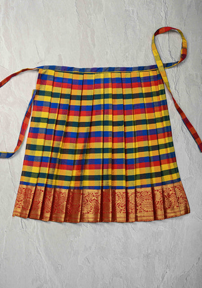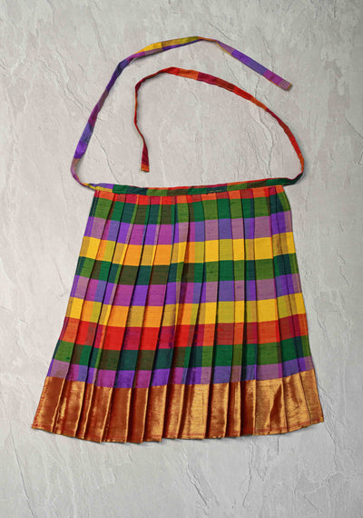 Multicolor Checks Pure Raw Silk Pavadas for Varamahalakshmi with Pleated and Lined ( Lining )