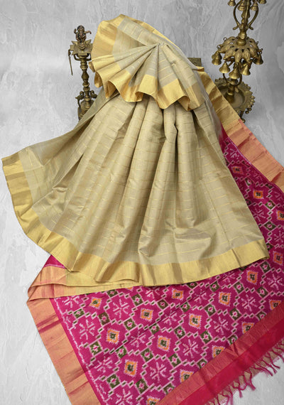 Ivory Pure Raw Silk Saree with Gold Tissue Zari Border | SILK MARK CERTIFIED