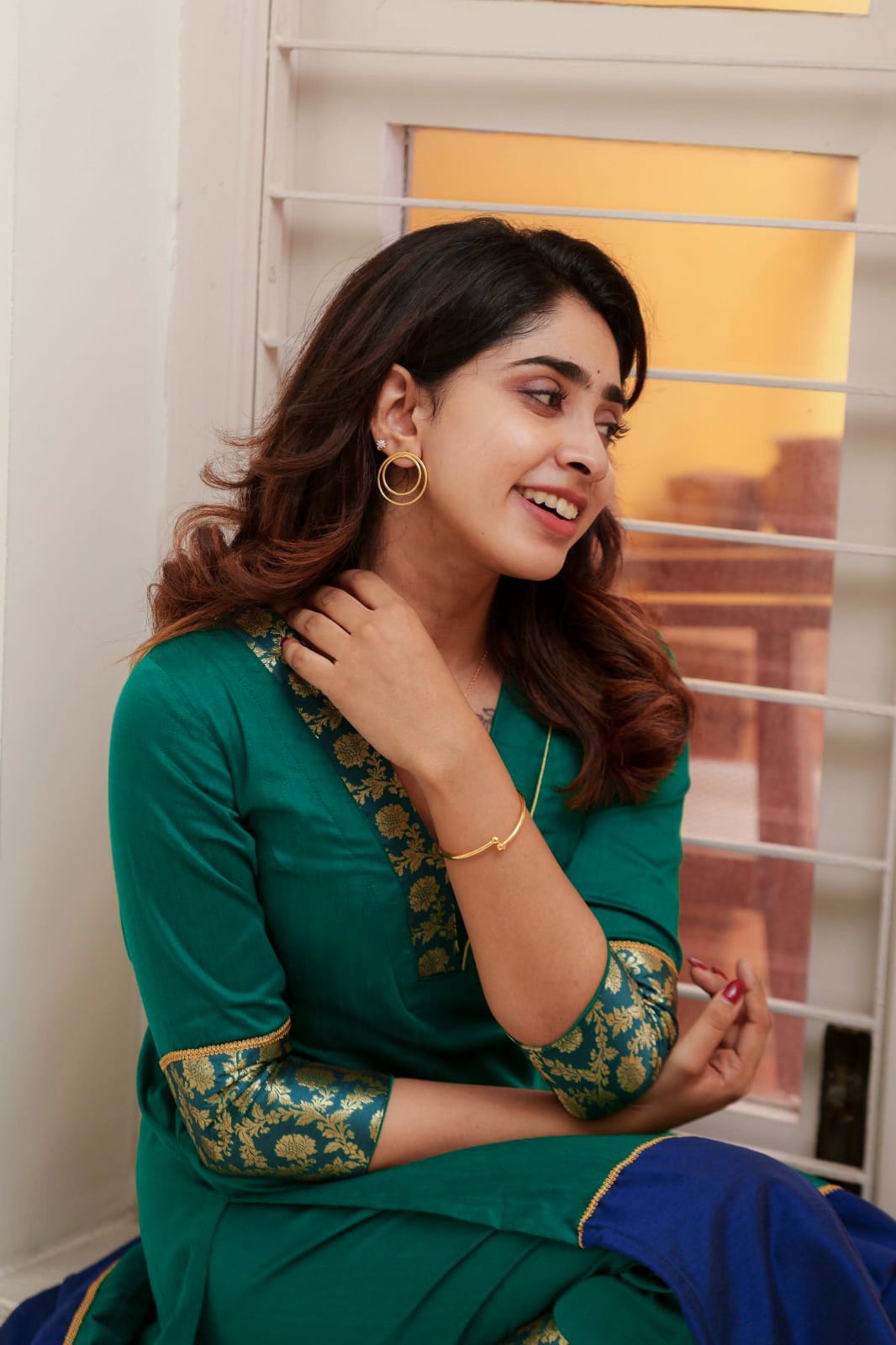 A stunning festive wear kurti set featuring a distinctive flexible V-neck pattern that catches everyone's eye. Why blend in when you can stand out with this kurti set's perfect color combination?