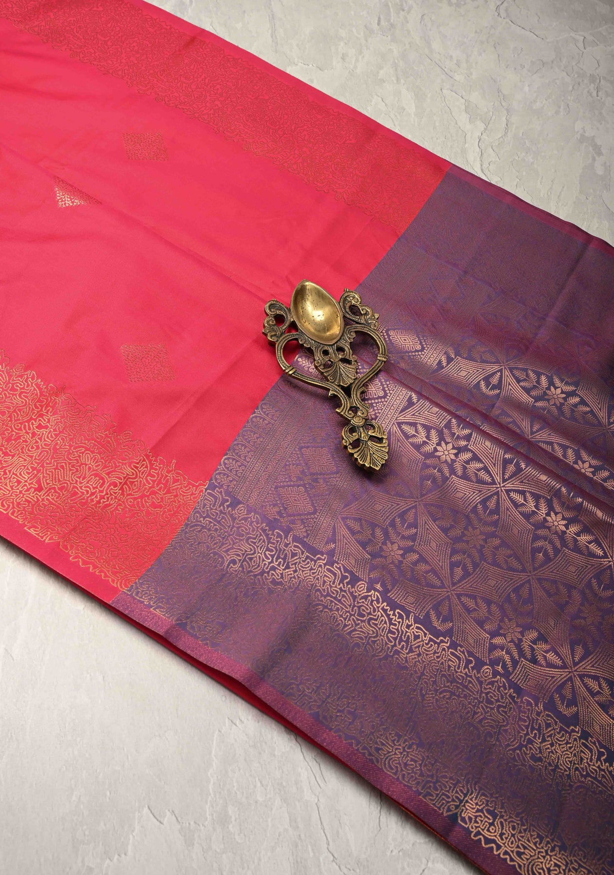 Hot Pink Kanchi Semi Silk Saree with Geometric Buttas and Abstract Zari Border