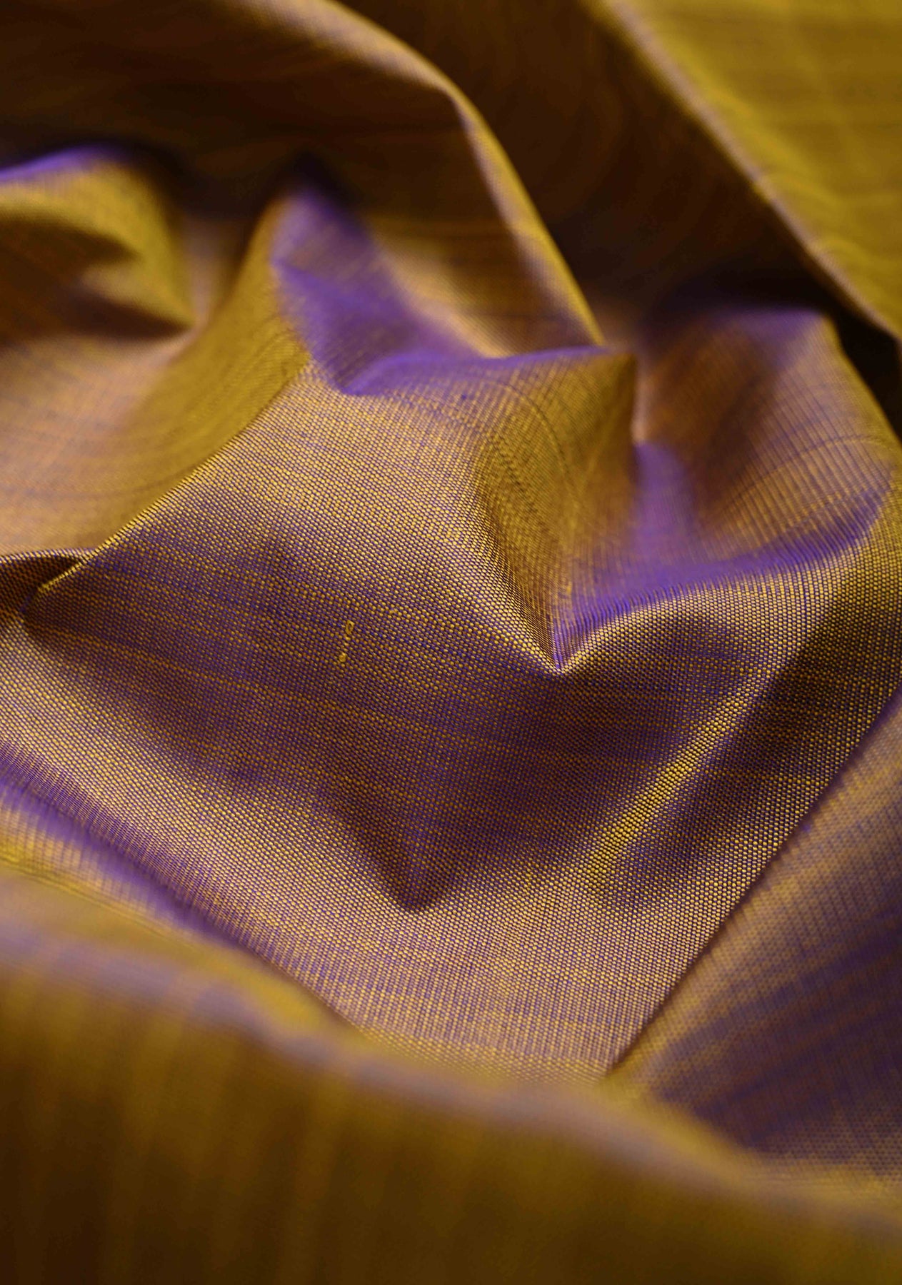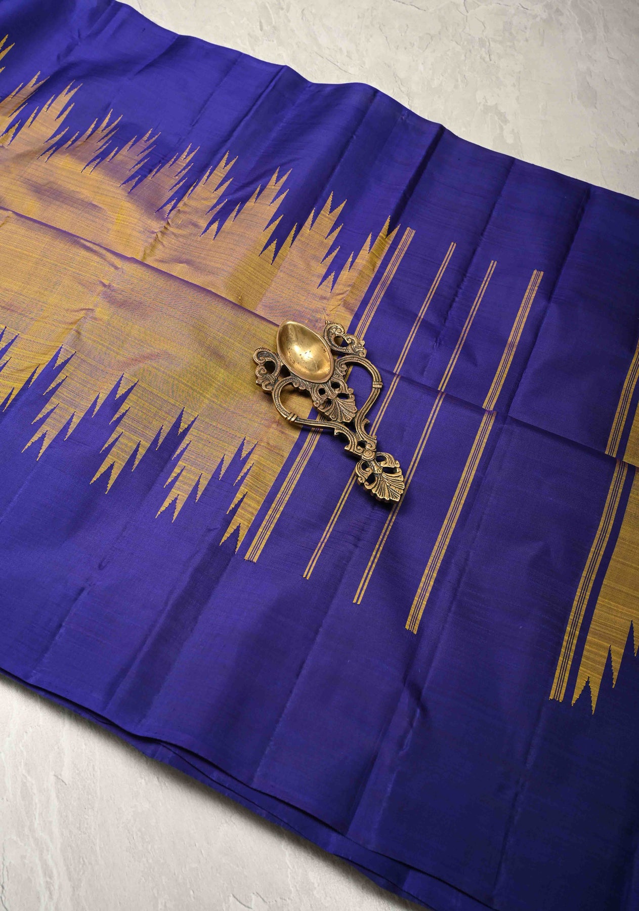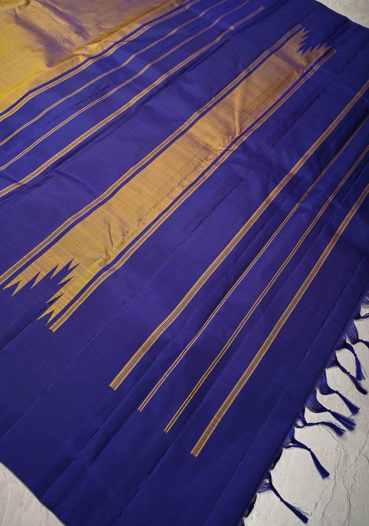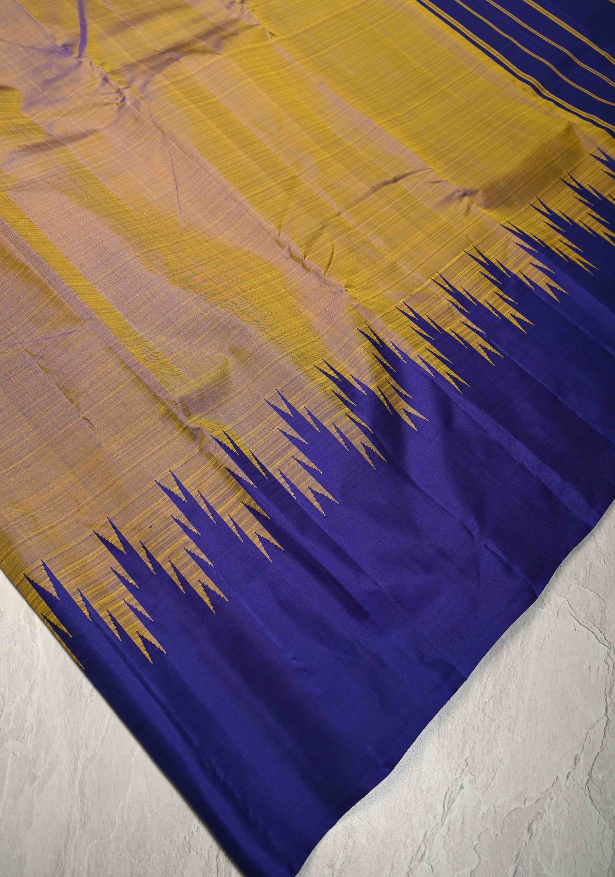 Yellow Dual Tone Pure Kanjivaram Silk Saree with Contrast Temple Border | SILK MARK CERTIFIED