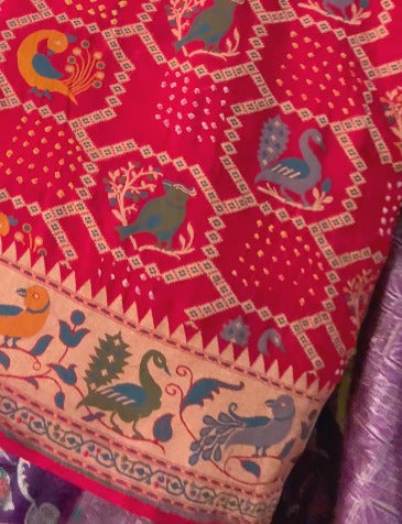 Blood Red Authentic Hand Bandhej Georgette Banarasi Shikargah Zari Jaal silk Saree with Paithani Pallu and Border | SILK MARK CERTIFIED