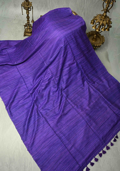 Border Less Mono Color Medium Lavender Geecha Tussar Silk Saree | SILK MARK CERTIFIED