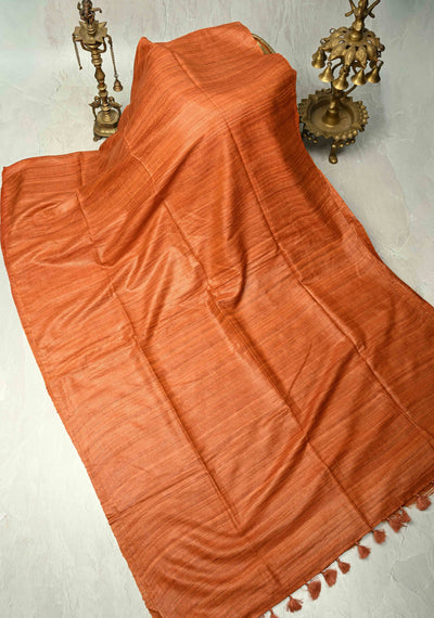 Border Less Mono Color Orange Geecha Tussar Silk Saree | SILK MARK CERTIFIED