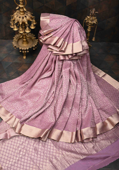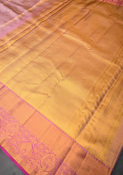 Dusty Amethyst Tissue Kanjivaram Silk Saree with Meenakari Brocade and Contrast Zari Border | SILK MARK CERTIFIED