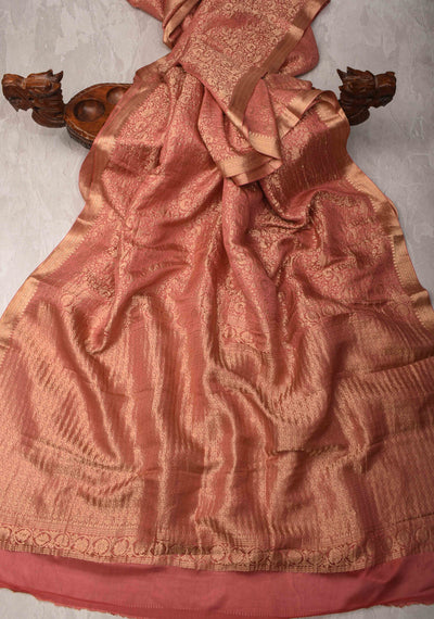 Exquisite Burnt Orange Tissue Banarasi Silk Saree with Paithani Style Zari Border | SILK MARK CERTIFIED