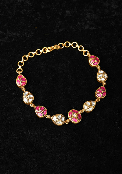 92.5 Silver Tear Drop Shaped Kundan Bracelet