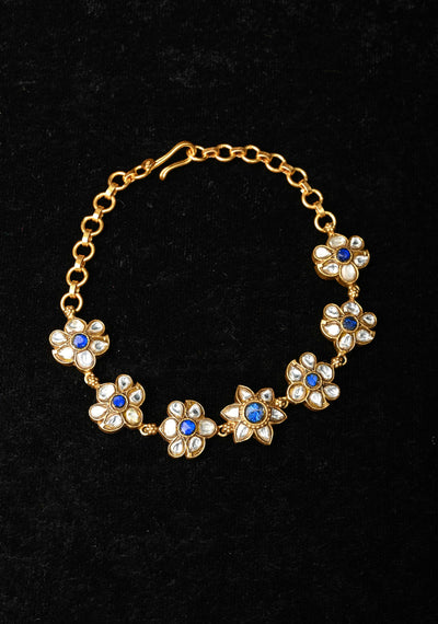 92.5 Silver Floral Kundan Bracelet with White and Blue Stone