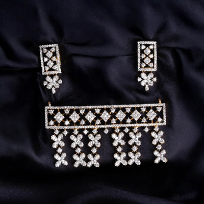 92.5 Silver, Gold Plated Single Layer with White Stone Necklace