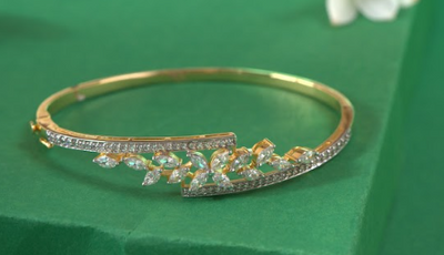 Pure 92.5 Silver, Gold Plated Floral CZ Stone Bracelet