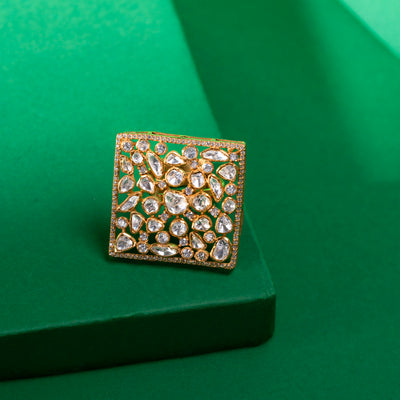 Pure 92.5 Silver Polki and Enamel Half-Band Ring
