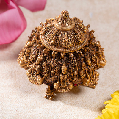 Pure 92.5 Silver Gold Plated Lakshmi KumKum Box
