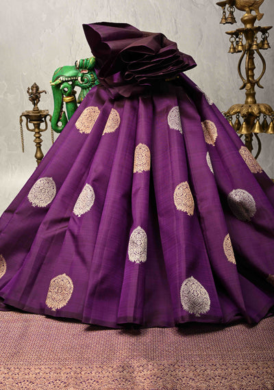 Grape Purple Borderless Pure Kanjivaram Silk Saree with Gold-Silver Buttas | SILK MARK CERTIFIED