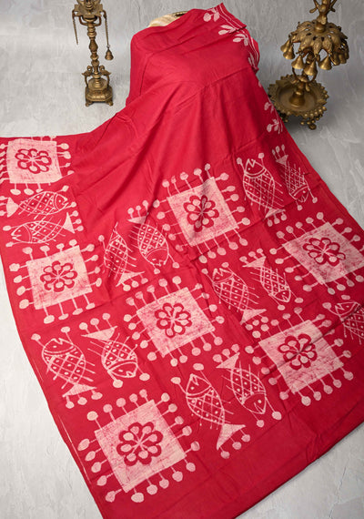 Pinkish Red Mul Cotton Saree with Hand Block Print