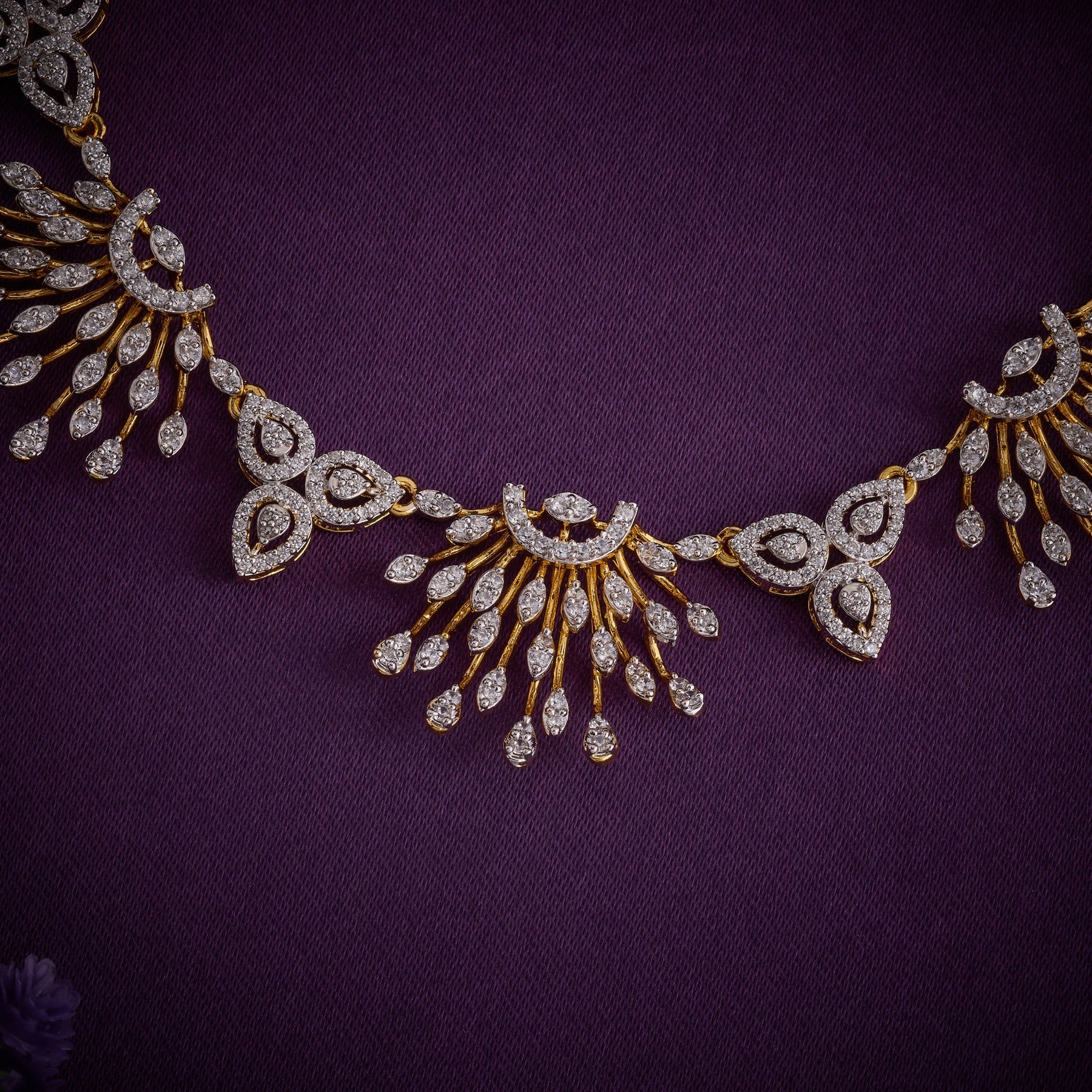 92.5 Silver, Gold Polish Daisy CZ Necklace Set