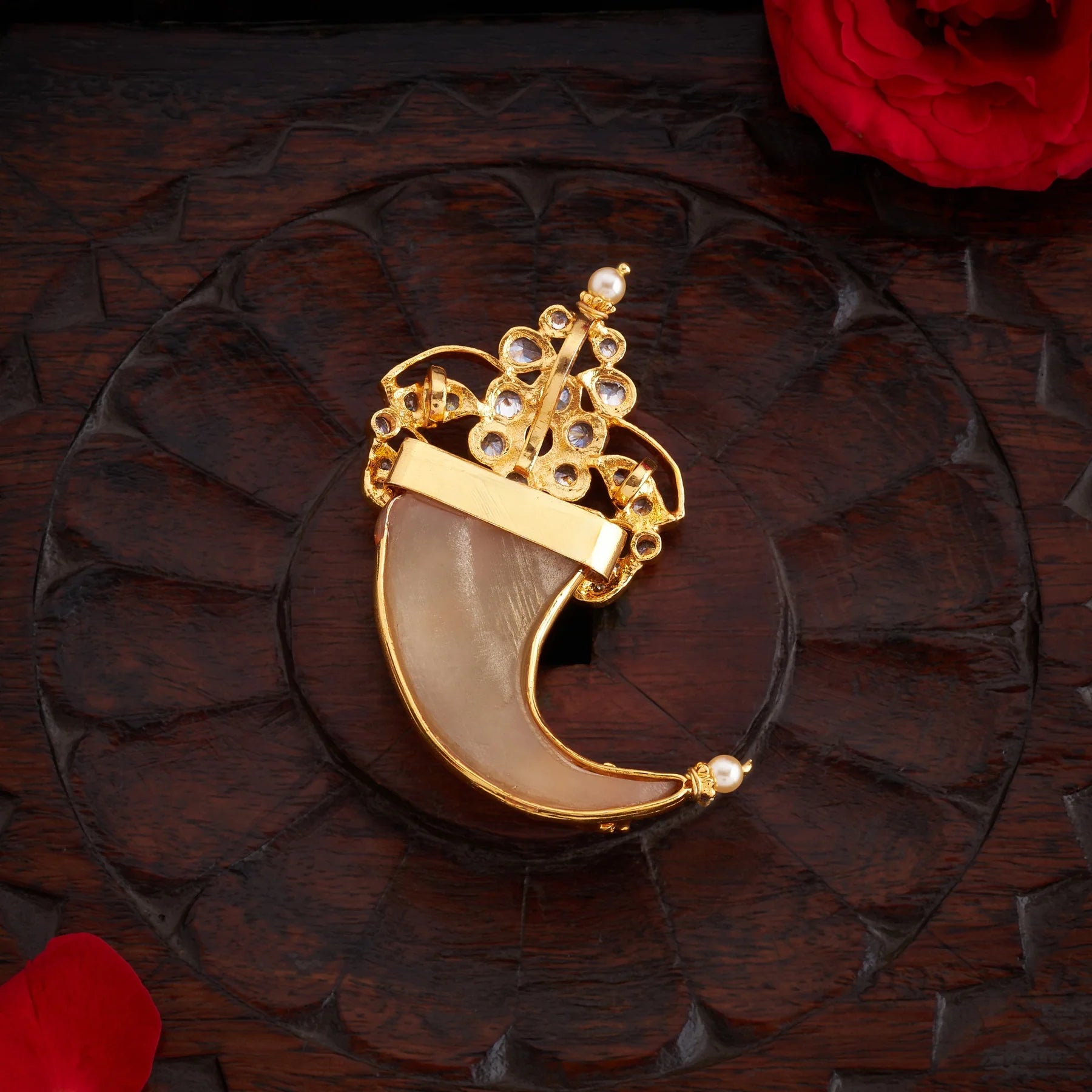Elevate your elegance with this exquisite Floral Arc Stone Pendant. Meticulously crafted with intricate Floral detailing and adorned with sparkling Cubic Zirconia stones, this piece radiates refined sophistication. Delicate Golden bead hangings cascade gracefully beneath, adding movement and dimension to your neckline. Perfect for those who appreciate timeless jewellery that seamlessly transitions from day to evening wear.