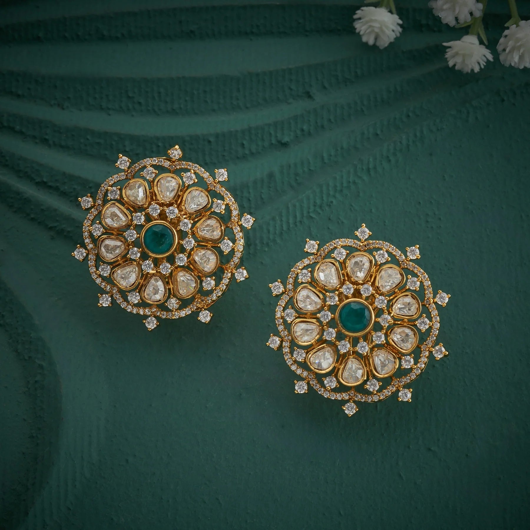 Victorian Orchid Studs capture timeless elegance with intricate Floral detailing adorned with sparkling CZ stones, luminous Moissanite, and rich green gemstones. Each stud showcases delicate craftsmanship inspired by classic Victorian design, blending multiple stone varieties for a sophisticated, multidimensional sparkle. Perfect for adding refined glamour to everyday wear or special occasions, these studs offer the luxurious appearance of fine jewellery with versatile styling appeal.