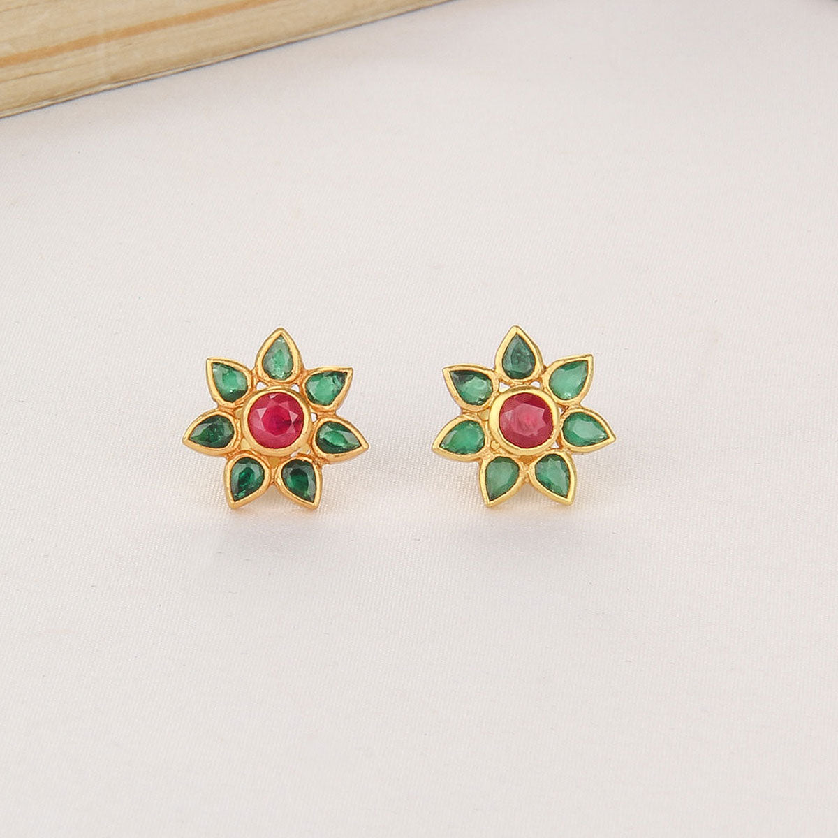 Fabricated from 92.5 silver and 24-karat gold plating, these earrings are adorned with semi-precious stones.