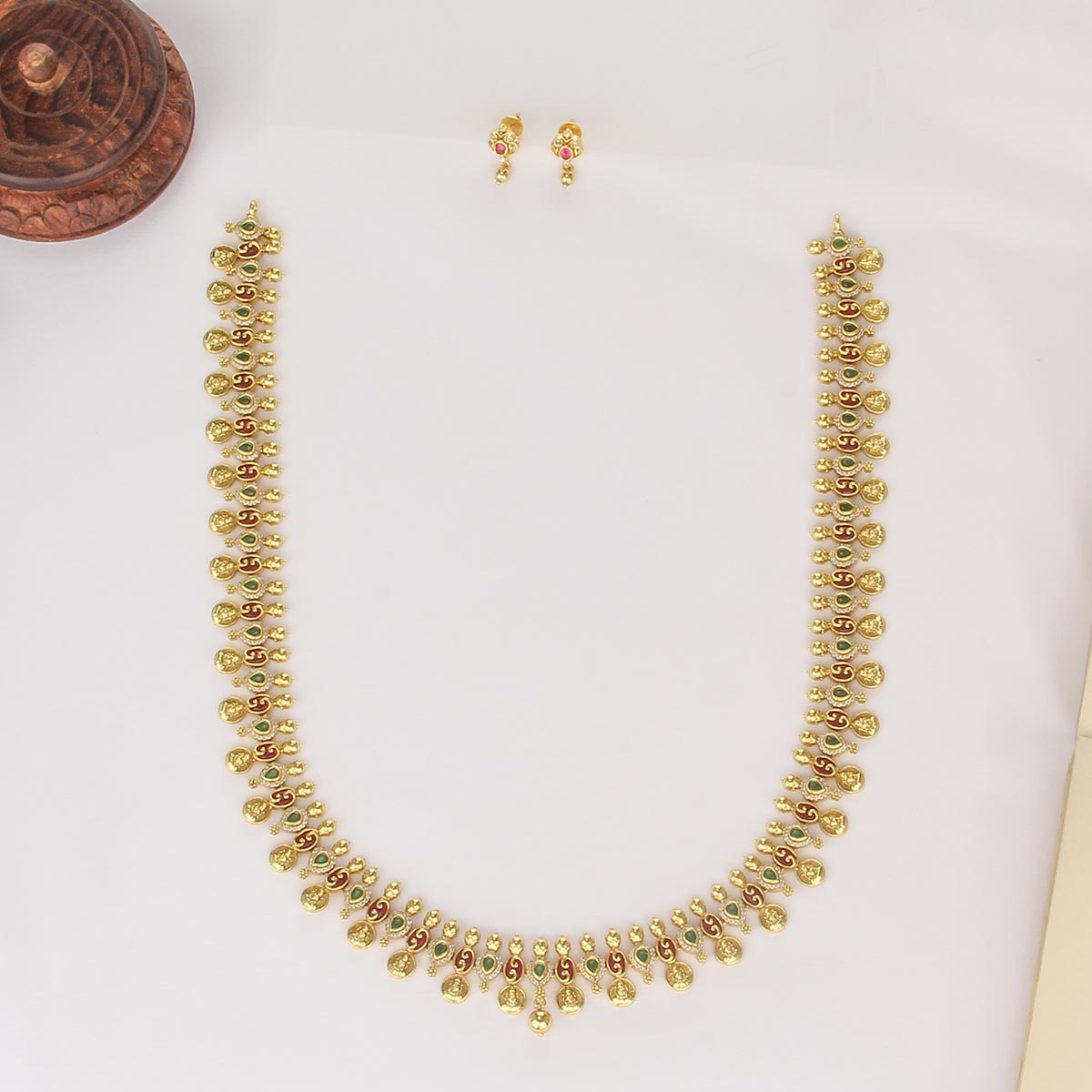 This set of Majestic Look Nagas necklaces is crafted from 92.5 Silver, 24kt Gold Plated, and is studded with semi-precious stones for a truly dazzling effect. Unparalleled in design and style, this exquisite set makes a grand statement.