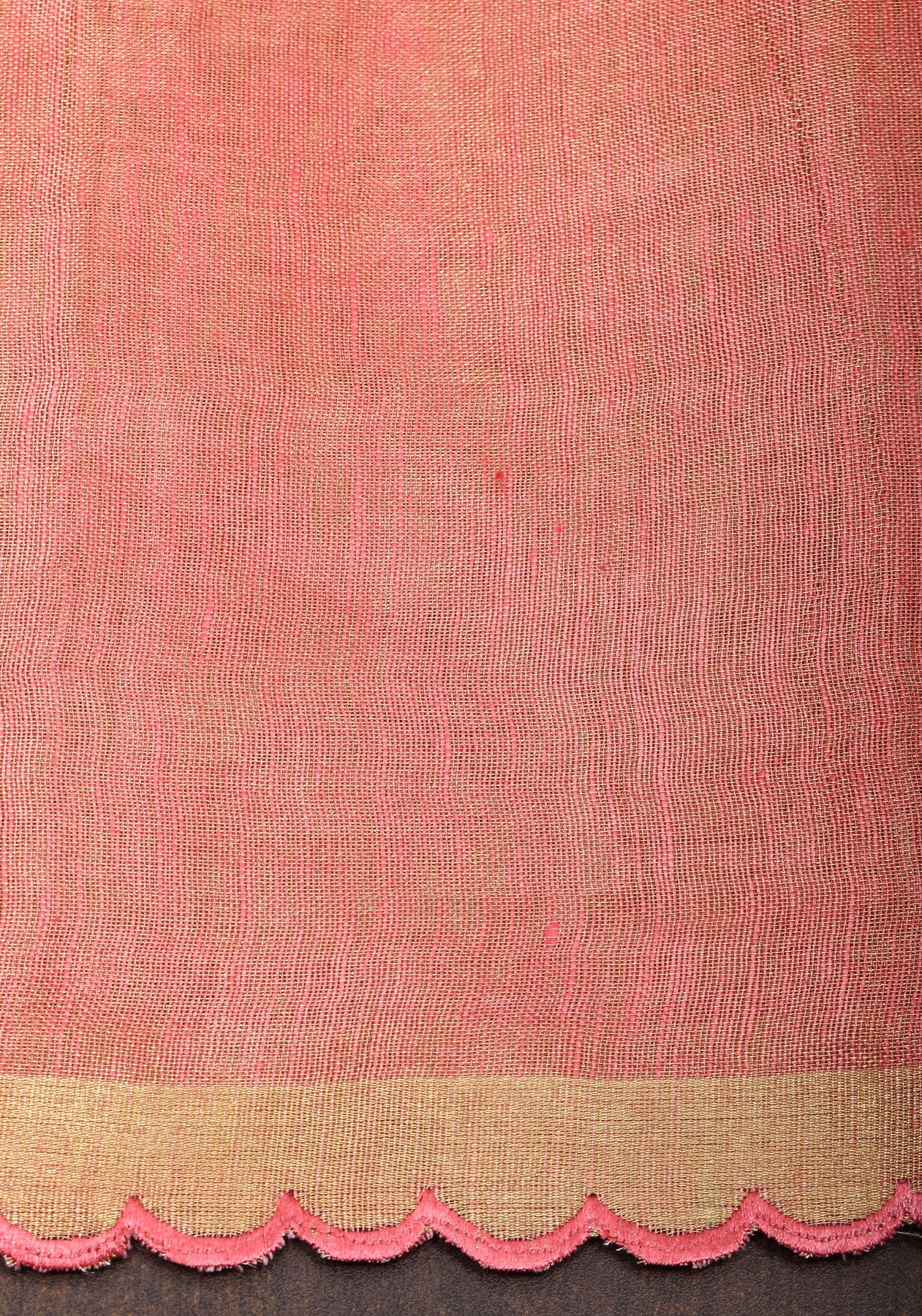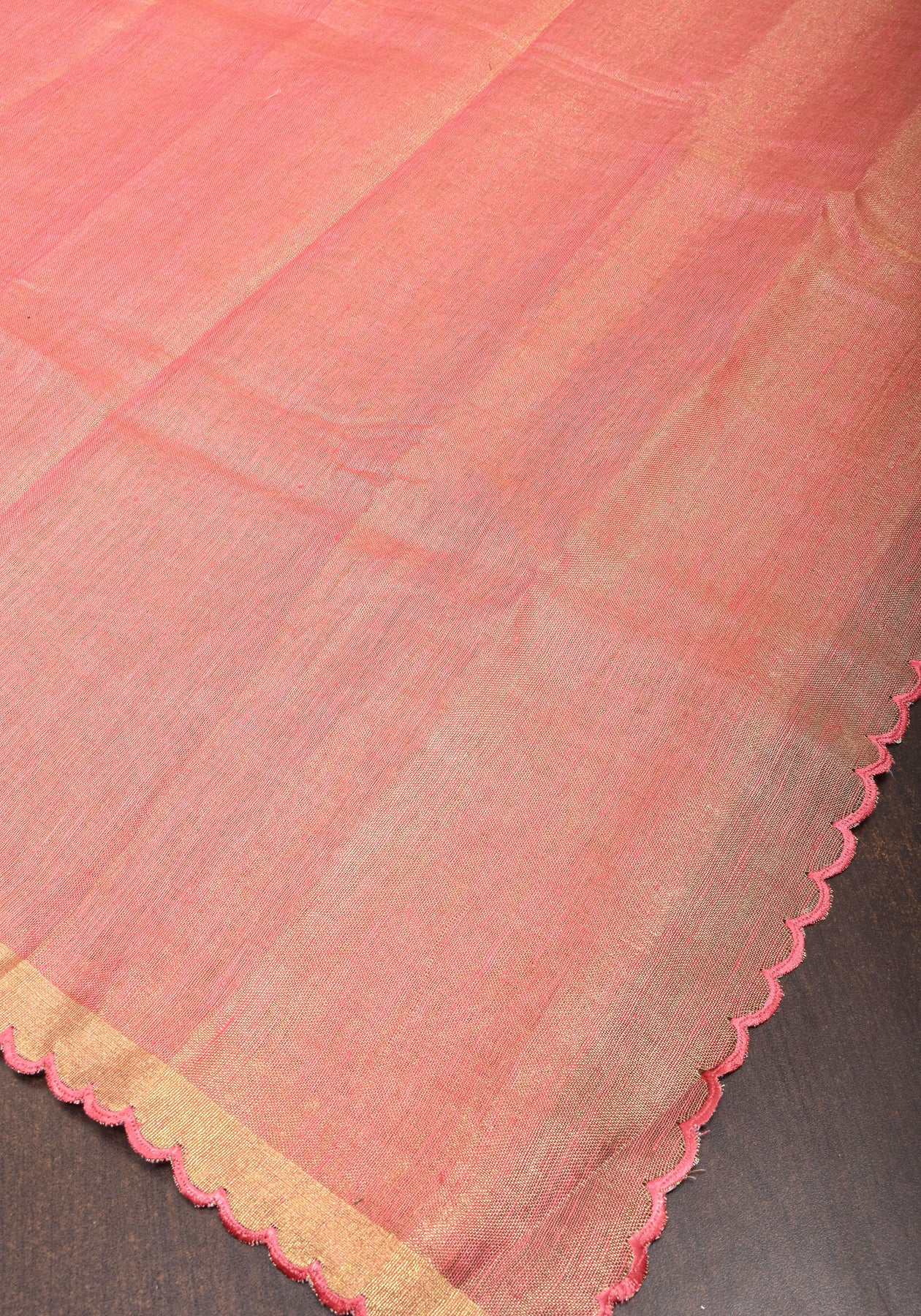 Pink tone Scalloped Tissue Linen Saree and golden border | Shobitam Saree