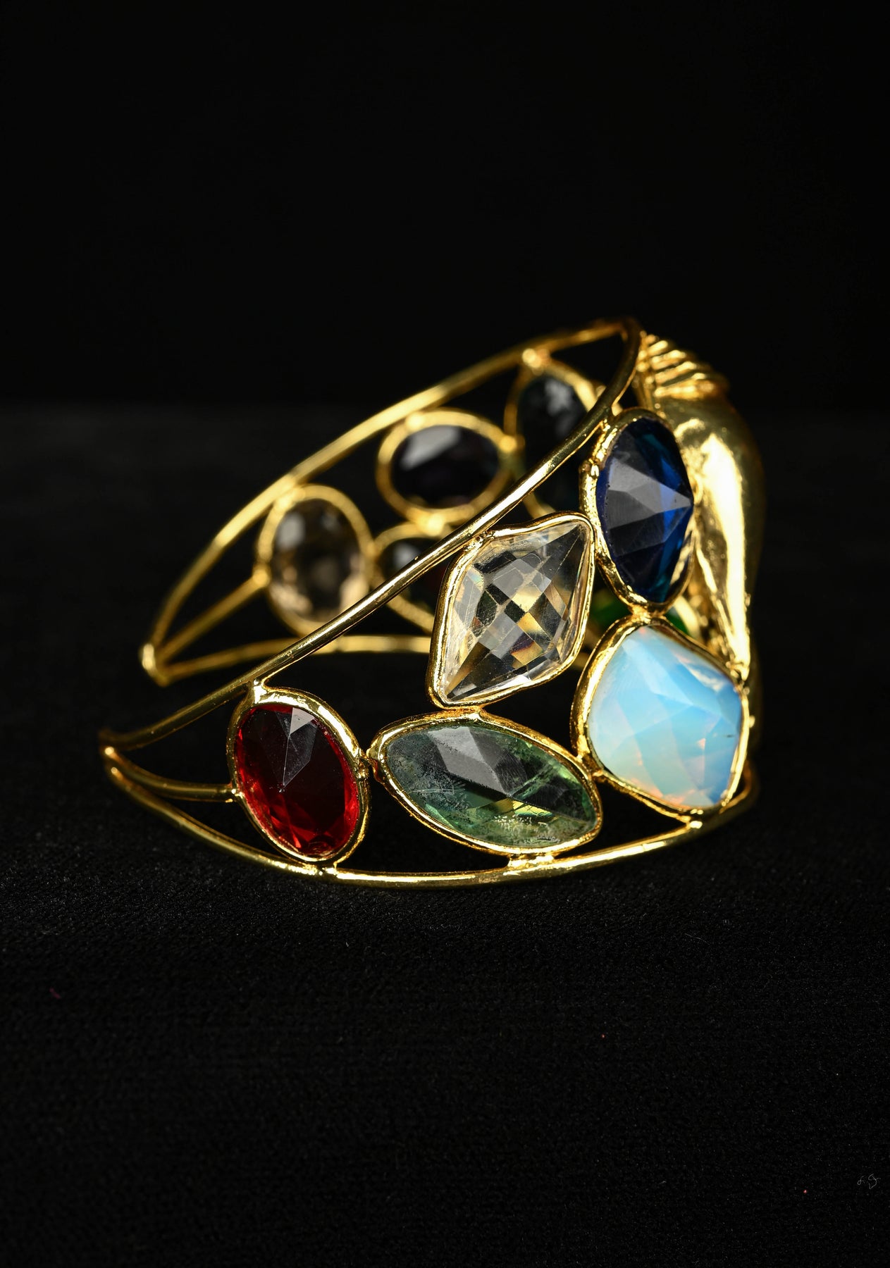 Bring a touch of coastal charm to your look with the Adjustable Handcuff Bracelet with Gold-Toned Metal, Seashells, Starfish, and Multicolor Glass Gemstones. Featuring intricate seashell and starfish motifs in gold-tone metal, this bracelet is accented with vibrant multicolor glass gemstones for a playful, ocean-inspired aesthetic. The adjustable handcuff design ensures a comfortable fit, making it perfect for everyday wear, resort styling, or festive occasions. A whimsical yet elegant accessory that celebrates the beauty of the sea.