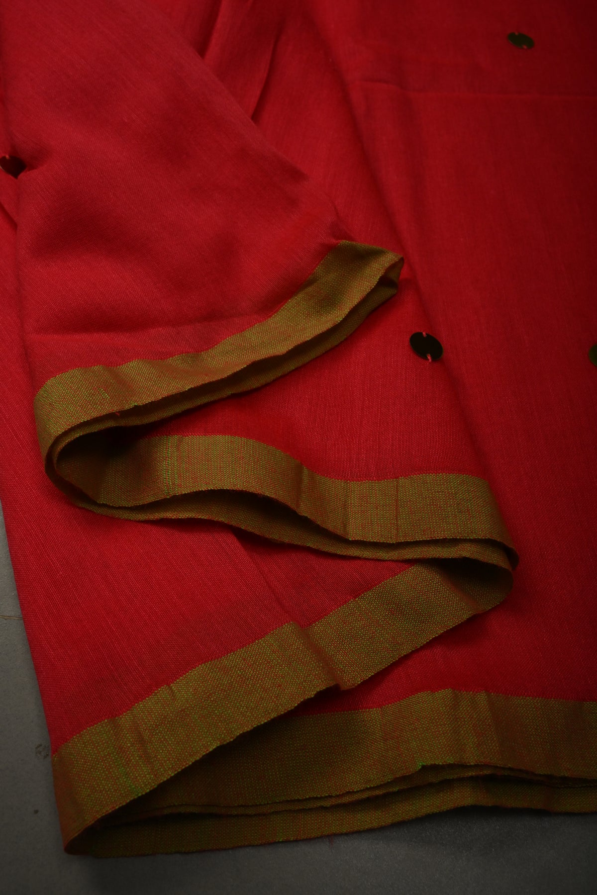 This Amaranth Mercerized Mul Cotton Saree exudes grace and sophistication, crafted from mul cotton for a soft, breathable feel. The amaranth color offers a deep, elegant tone, while the exquisite Tikki work along the borders adds a touch of tradition and intricate detailing. The saree is further elevated by long, flowing tassels at the pallu, providing a perfect balance of charm and style. Whether it's a wedding, festive occasion, or special celebration, this saree is designed to make you feel elegant and comfortable.