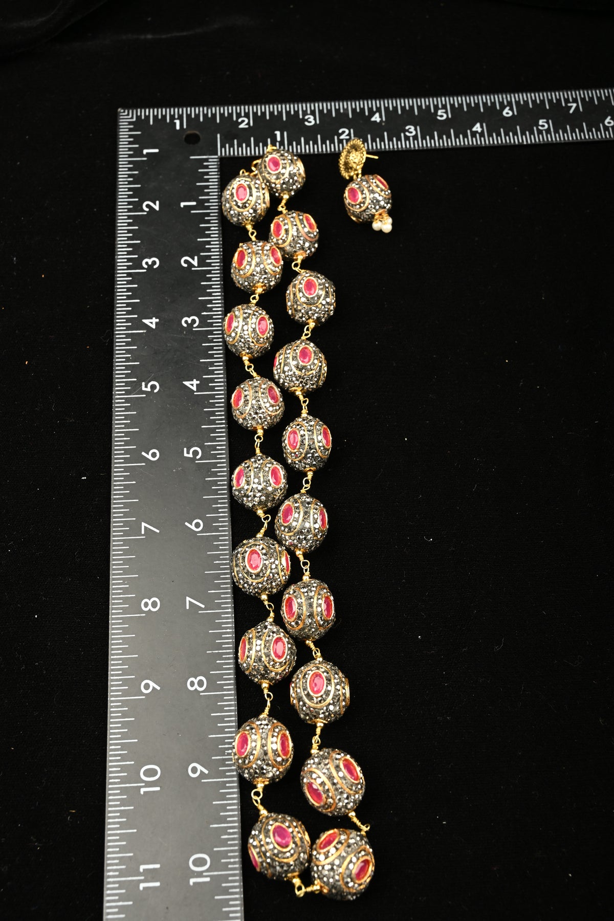 Each bead is richly textured with sparkling accents, creating depth and brilliance reminiscent of heirloom jewelry. Paired with matching earrings, this set is perfect for weddings, festive occasions, and grand celebrations.