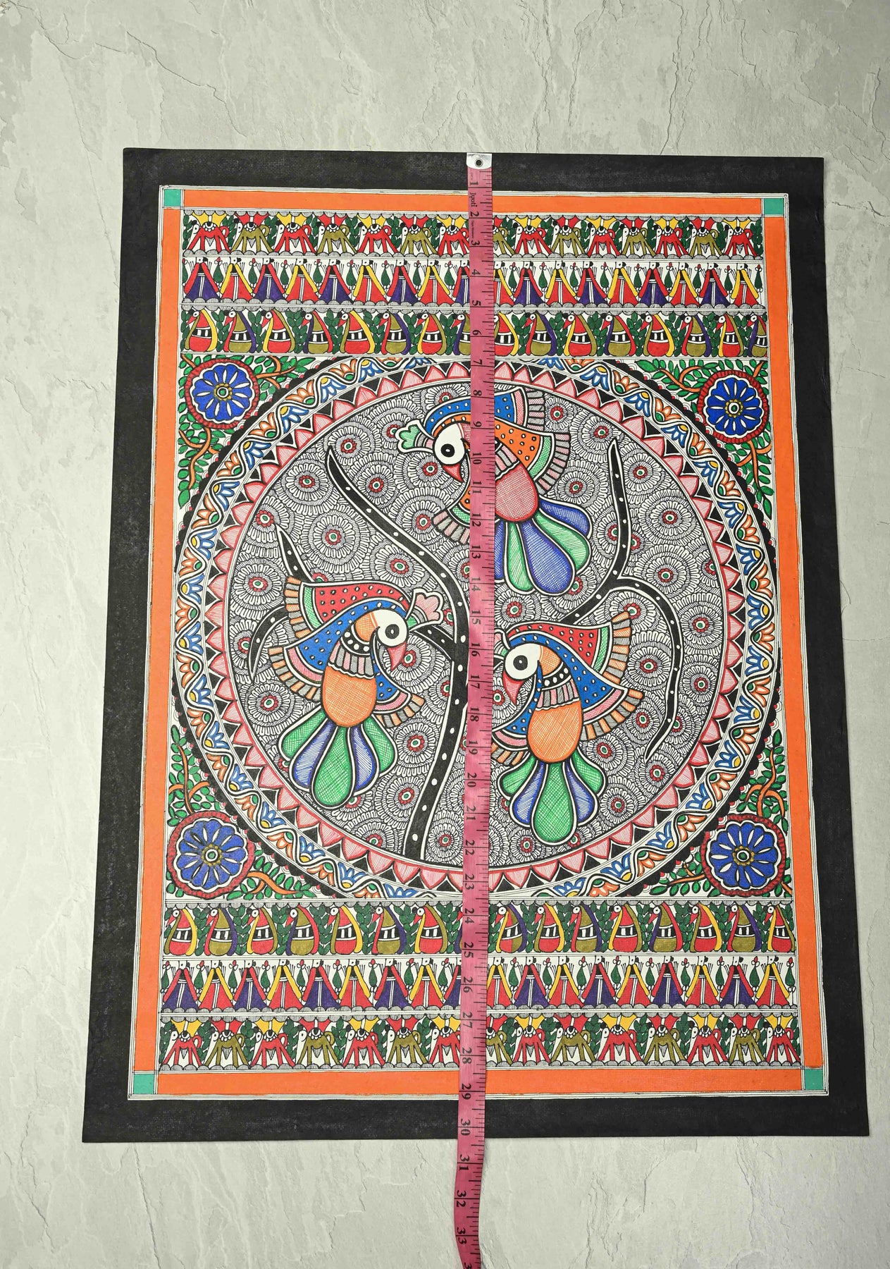 This Authentic Mithila Hand-Painted Madhubani Wall Art captures the essence of traditional Indian folk artistry with its intricate detailing and vibrant natural hues. Created by skilled artisans from the Mithila region, each stroke reflects cultural symbolism, storytelling, and age-old techniques passed down through generations. The unframed design allows you the freedom to customize it to suit your home or office décor. Perfect for adding a touch of heritage, elegance, and artistic charm to any space, this piece is a true celebration of India’s rich artistic legacy.