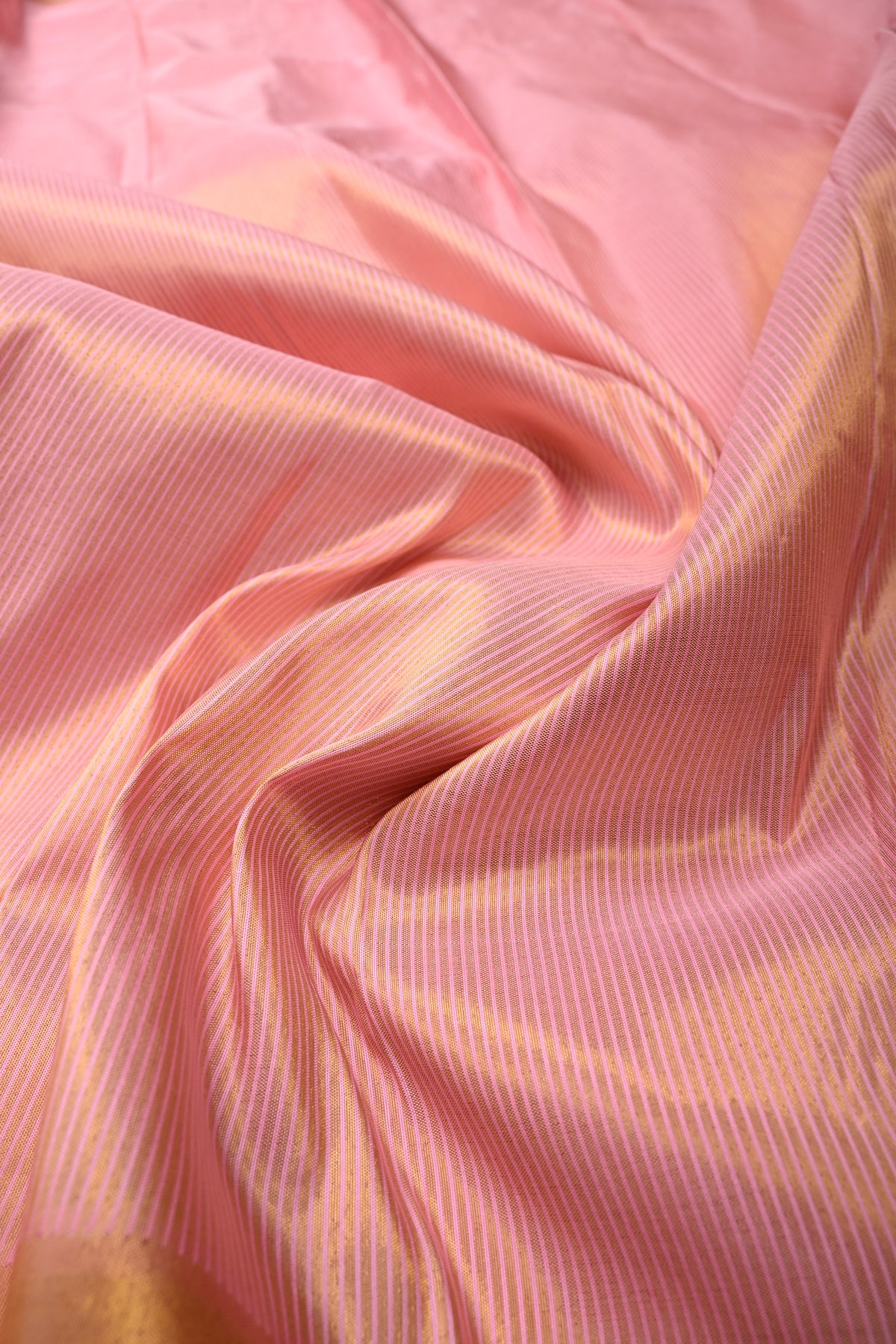 The soft pink shade exudes grace and femininity, while the classic single Muniya borders add subtle sophistication. The pallu features intricate peacock motifs, showcasing traditional artistry and adding a regal charm to the saree. Lightweight yet rich, this saree drapes beautifully, making it perfect for weddings, festive occasions, and cultural celebrations.
