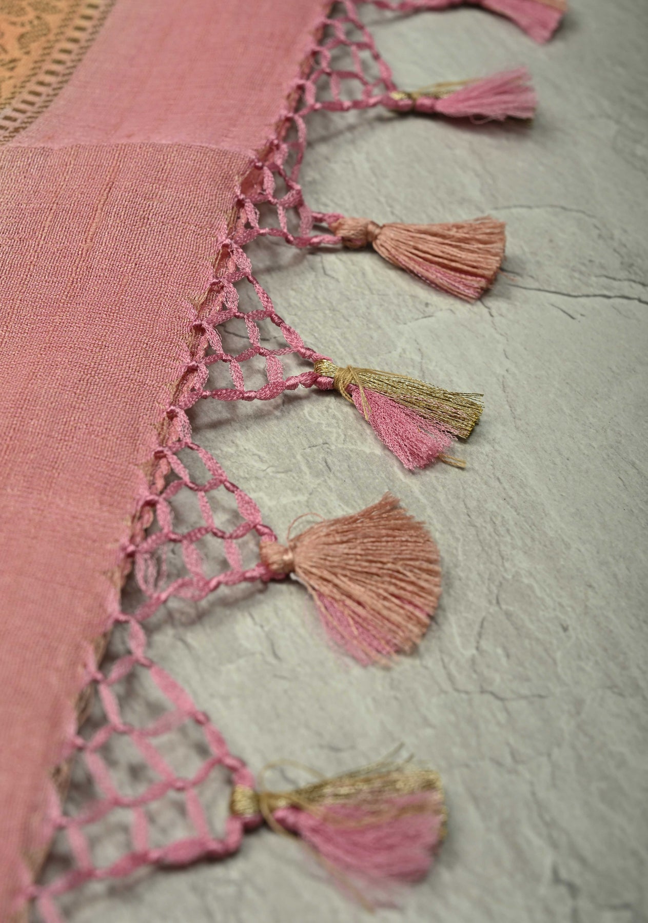 This saree is ready to wear with fall and pico done. Handmade silk tassels adorn the pallu and add more grace to it. An unstitched blouse fabric is included.
