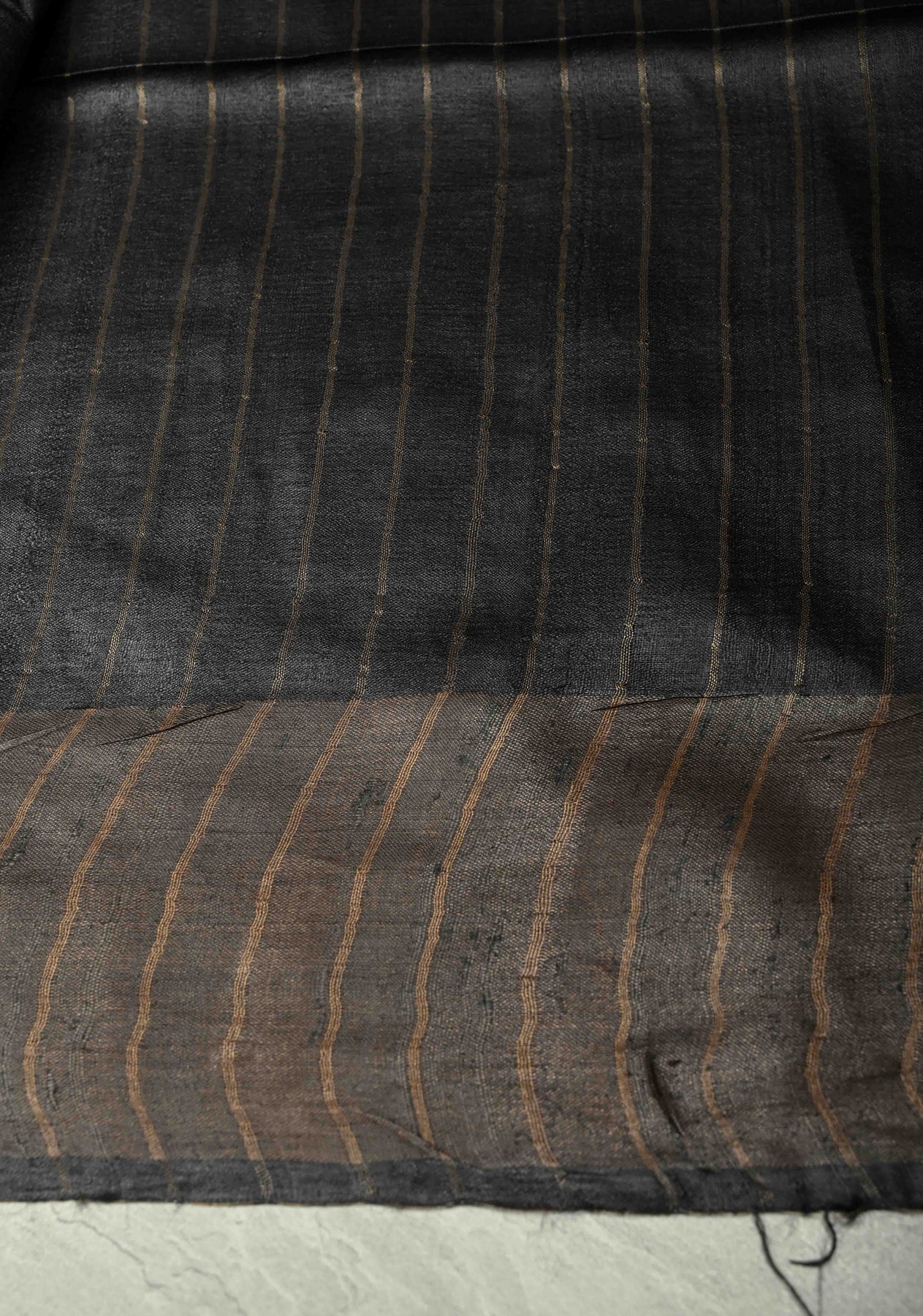 Embrace the elegance of traditional craftsmanship with this Black Authentic Hand Block Print Tussar Silk Saree. The raw, rich texture of the Tussar silk is the perfect canvas for the intricate hand block motifs, which stand out beautifully against the deep black hue. This timeless saree offers a unique combination of natural texture and refined artistry, ideal for sophisticated evening events.