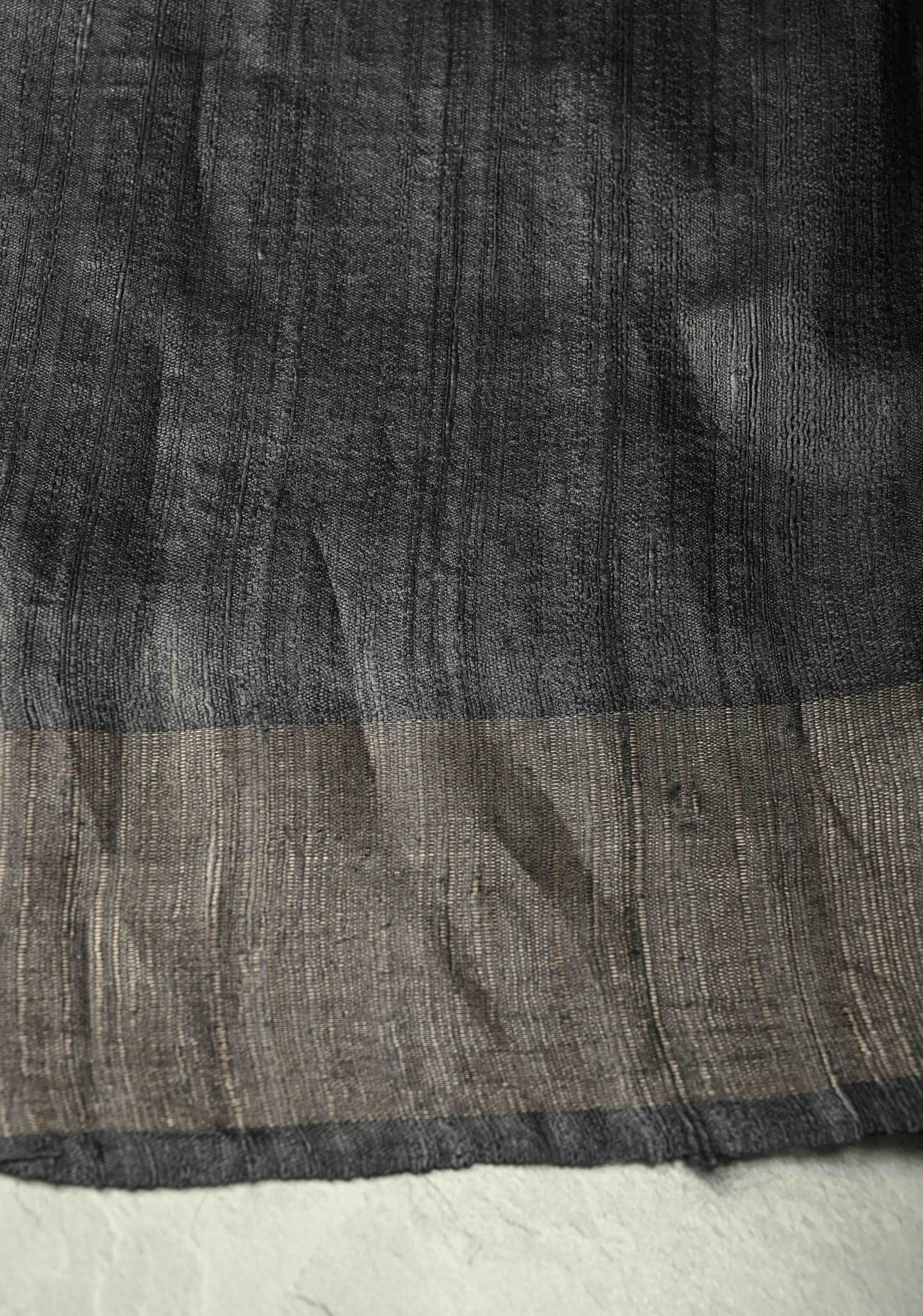 Black Authentic Hand Block Print on Tussar Silk Saree | SILK MARK CERTIFIED