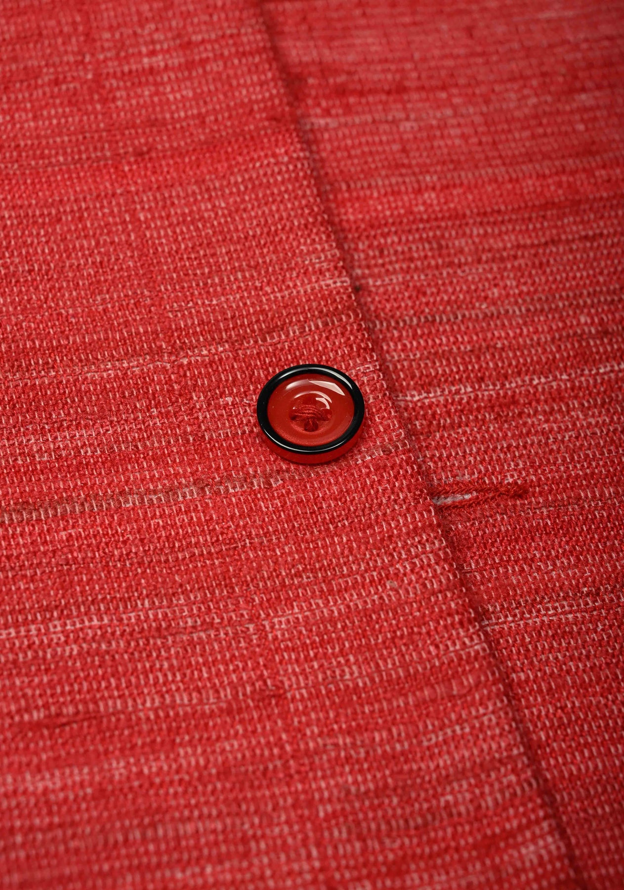 This Brick Red Men’s Jute Silk Nehru Jacket offers a perfect blend of traditional charm and contemporary style. Crafted from jute silk, it features a smooth texture, lightweight comfort, and a subtle sheen that enhances its brick red hue. The classic Nehru collar and tailored fit make it ideal for pairing with kurtas, shirts, or trousers for weddings, festive celebrations, or formal occasions. A versatile wardrobe staple, this waistcoat adds a refined and stylish ethnic touch to any ensemble.