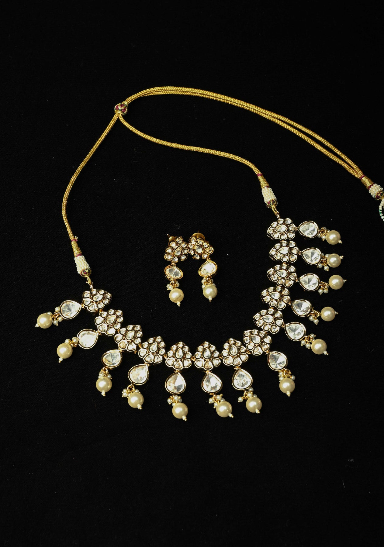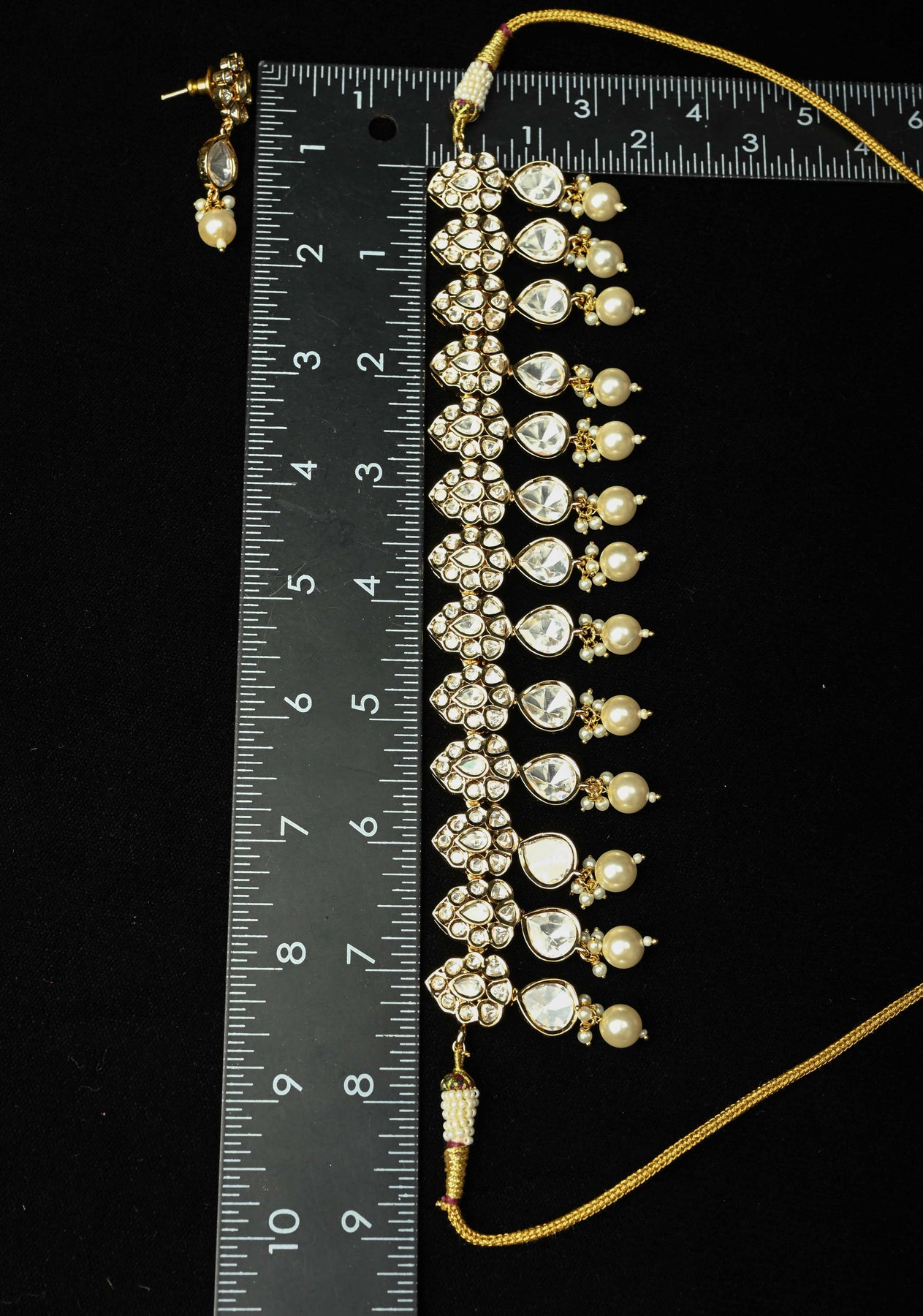 Make a statement on your special day with this Bridal Kundan Necklace Set featuring White Stones and Dangling Pearls. Exquisitely crafted, the set combines traditional Kundan work with sparkling white stones and elegant dangling pearls, giving it a regal and timeless appeal.