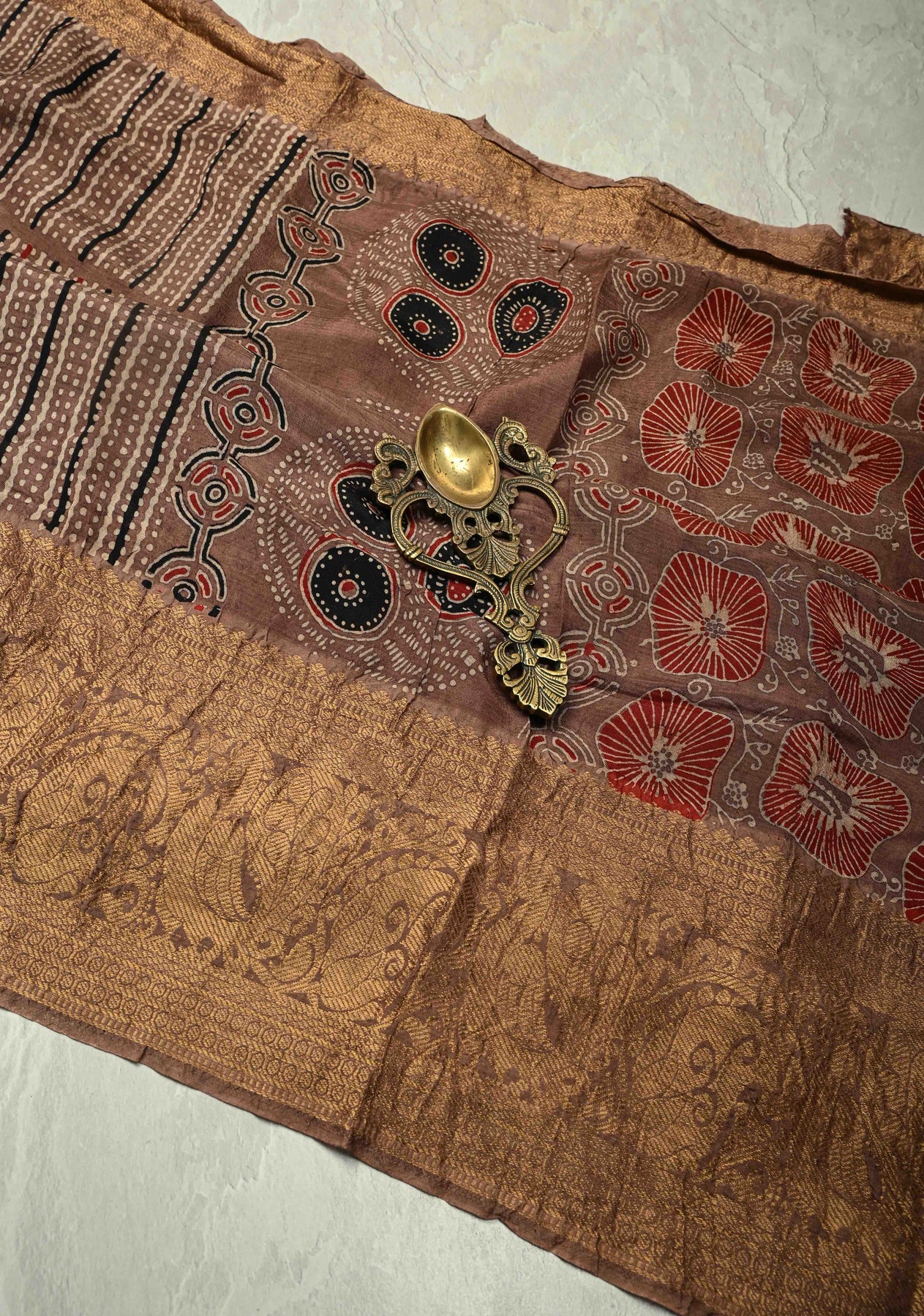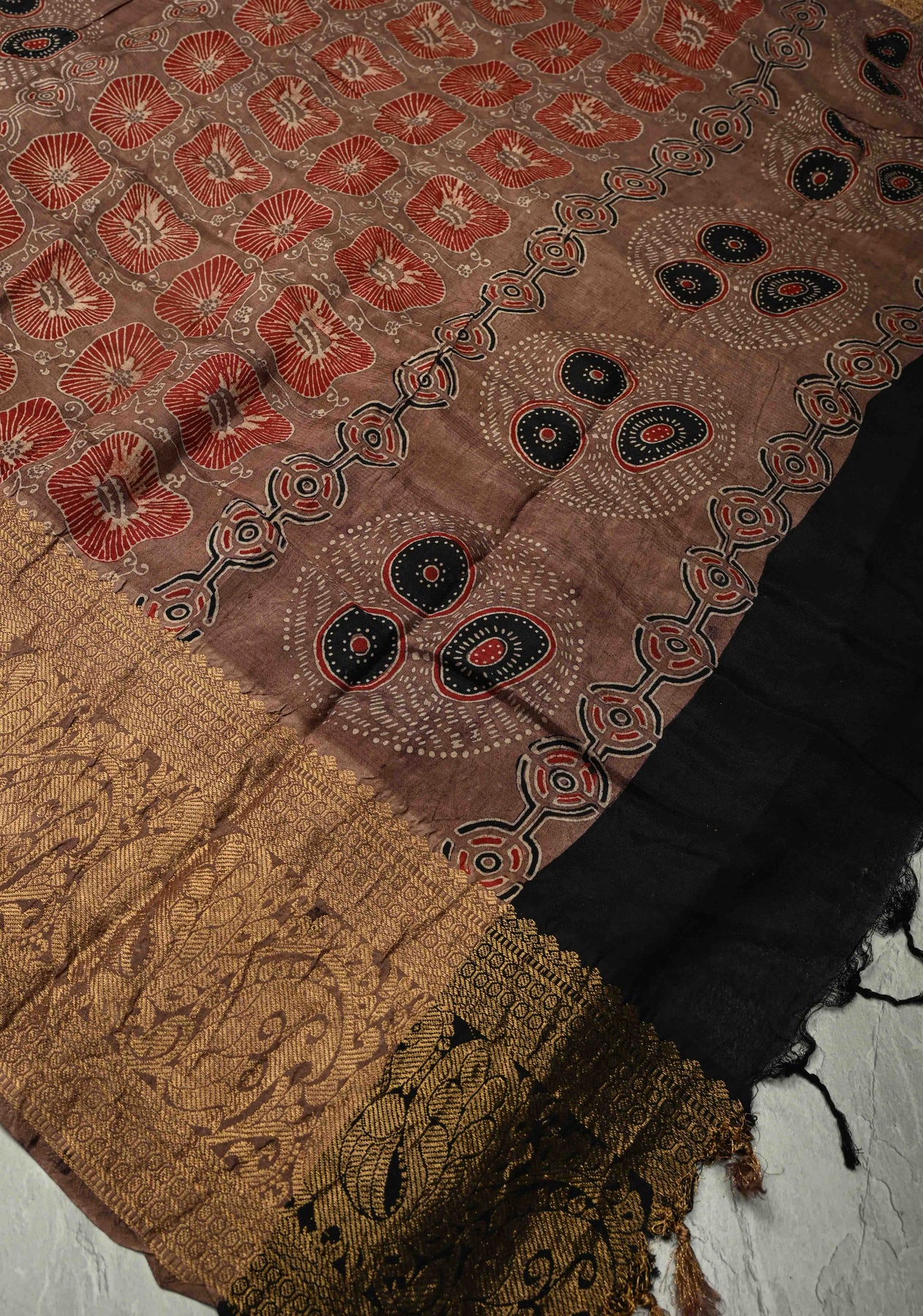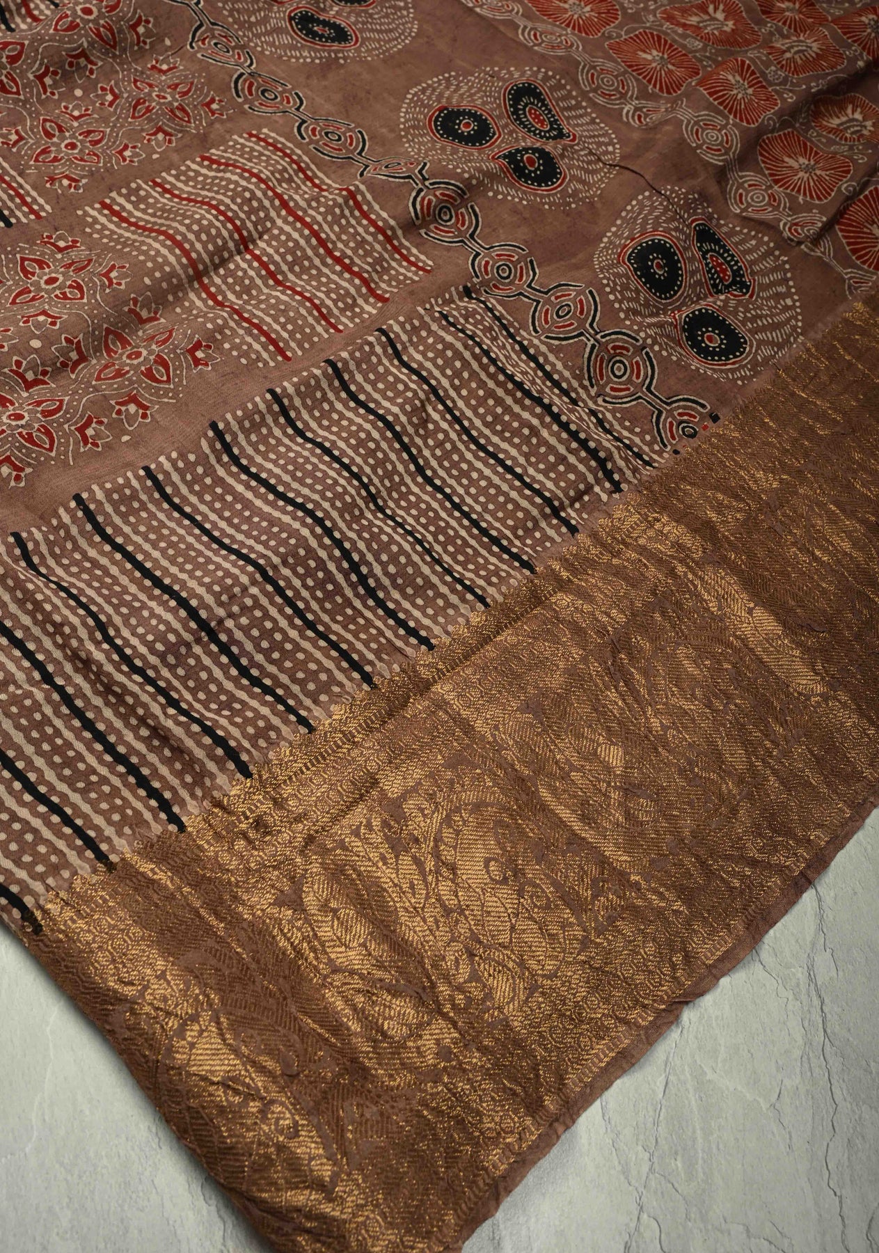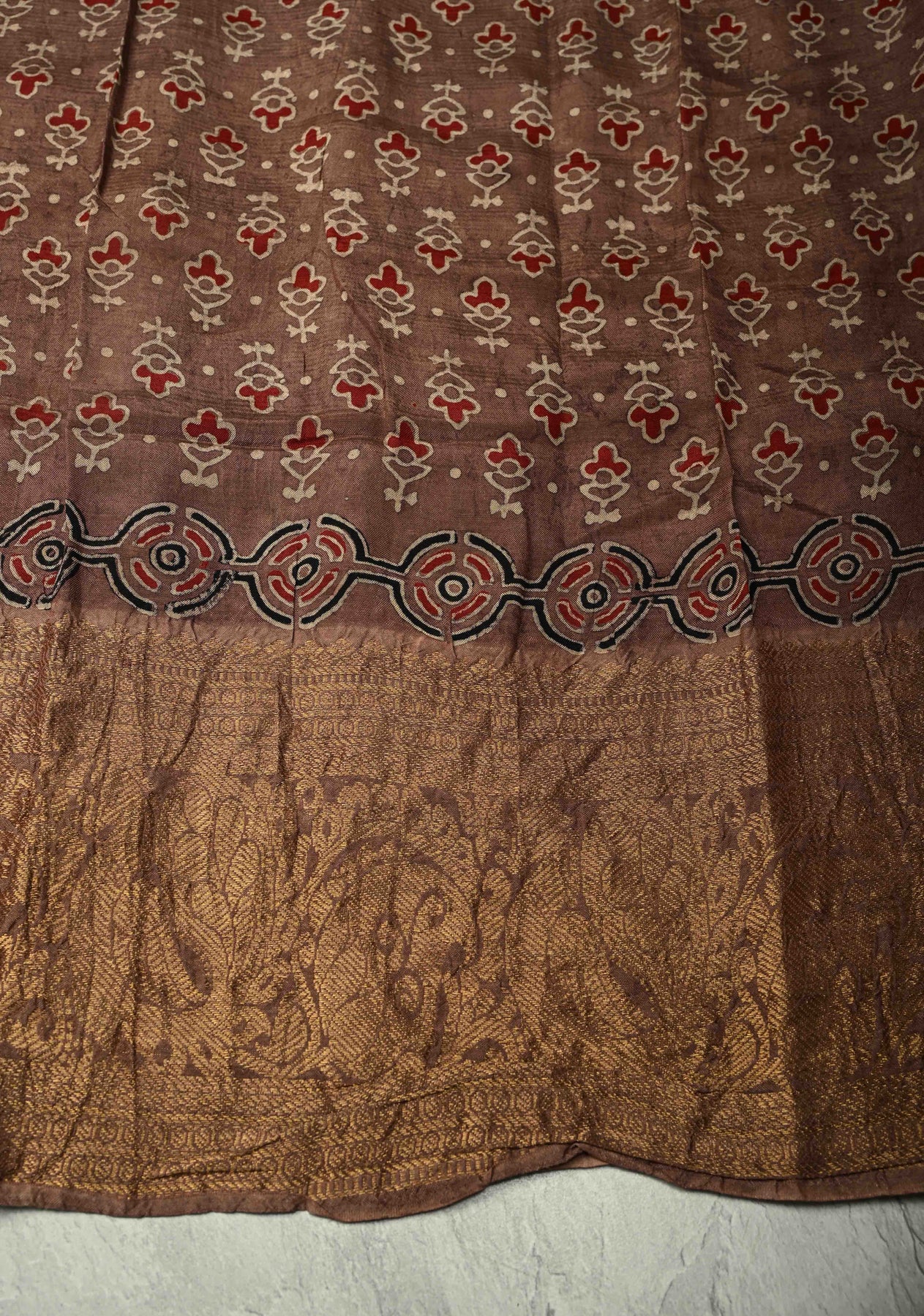 *Note : This is a fully handmade saree and may be subject to slight irregularities such as slight smudges, dye marks and minor asymmetry in block print.