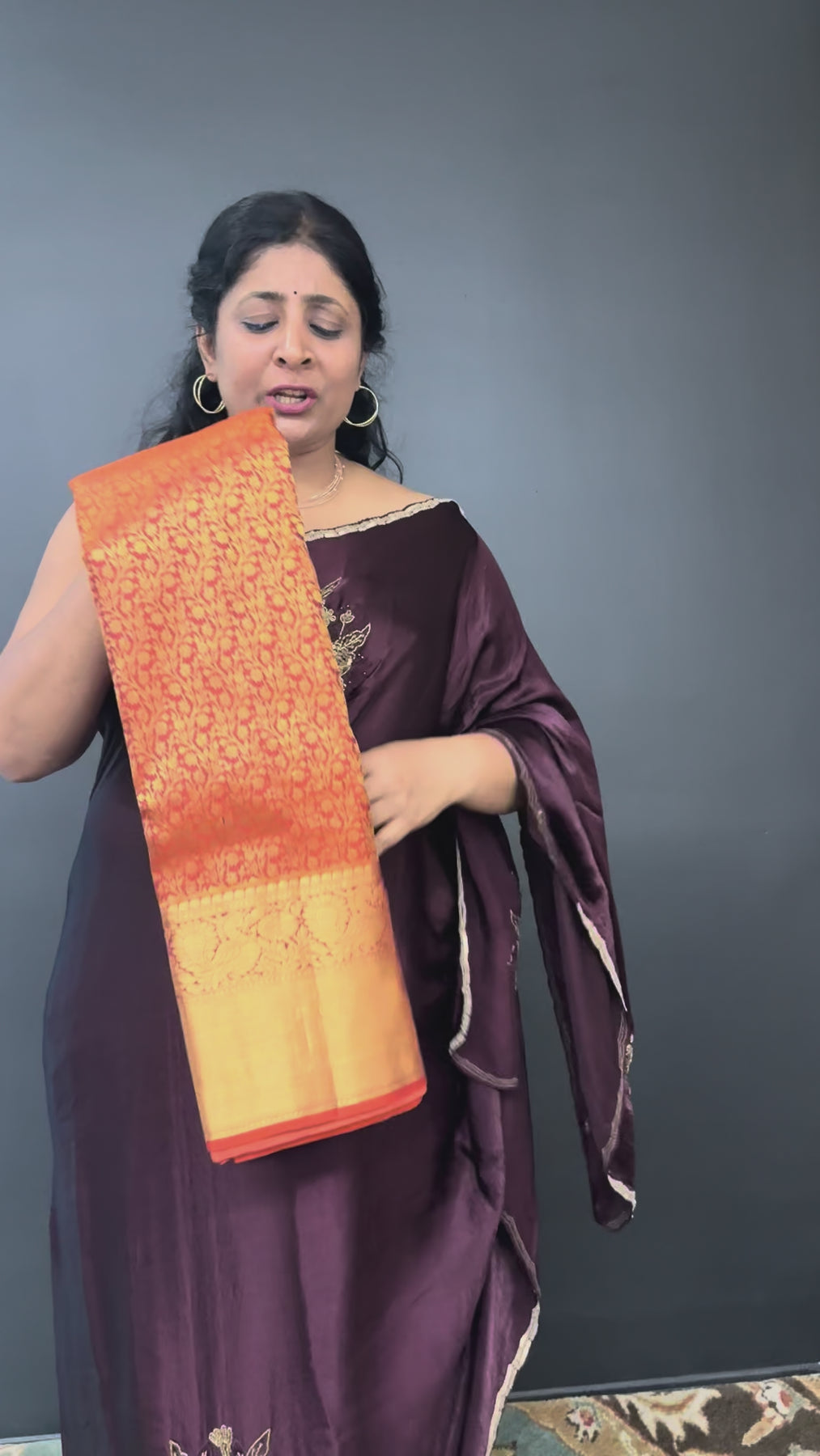 The striking burnt orange hue exudes warmth and vibrancy, making it a perfect choice for festive occasions, weddings, and special celebrations. Complementing the opulence of the body is a lustrous gold zari border, meticulously woven to add a touch of grandeur and definition to the ensemble.
