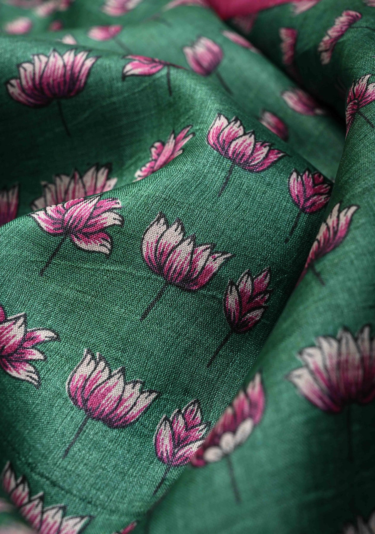 The earthy cactus green base serves as a perfect backdrop for traditional hand block prints, combining artisanal charm with contemporary appeal. The minimal contrast zari border adds a subtle touch of sophistication without overpowering the design, making this saree ideal for festive occasions, casual gatherings, and formal events. Pair it with understated jewelry to highlight its artisanal beauty.