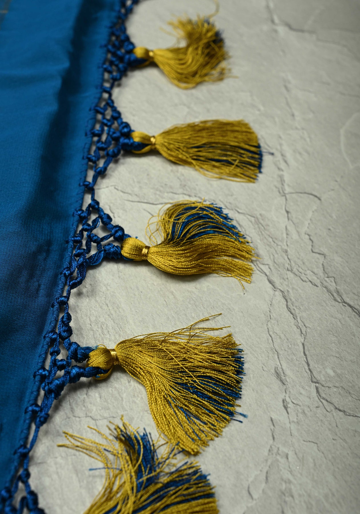 This saree is ready to wear with fall and pico done. Handmade silk tassels adorn the pallu and add more grace to it. An unstitched blouse fabric is included.