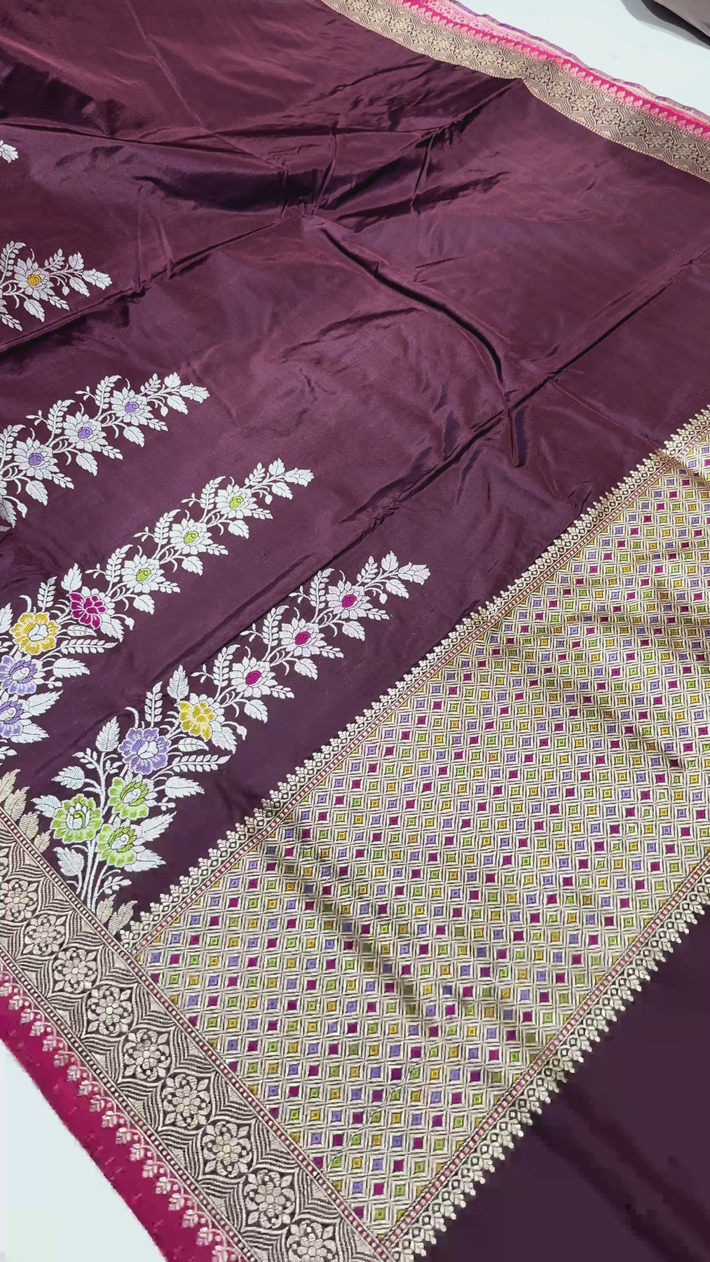 The Chocolate Brown Banarasi Pure Katan Silk Saree exudes timeless elegance and rich tradition. Crafted from pure Katan silk, this saree boasts a chocolate brown hue that lends a sophisticated and versatile charm. Intricately adorned with delicate Meenakari detailing, it features fine enamel work that adds subtle pops of color and artistry throughout the fabric. The classic zari border enhances the saree’s regal appeal with shimmering gold threadwork, completing the look with a perfect balance of tradition and opulence. Ideal for weddings, festive occasions, and formal events, this saree is a must-have for those who appreciate refined craftsmanship.