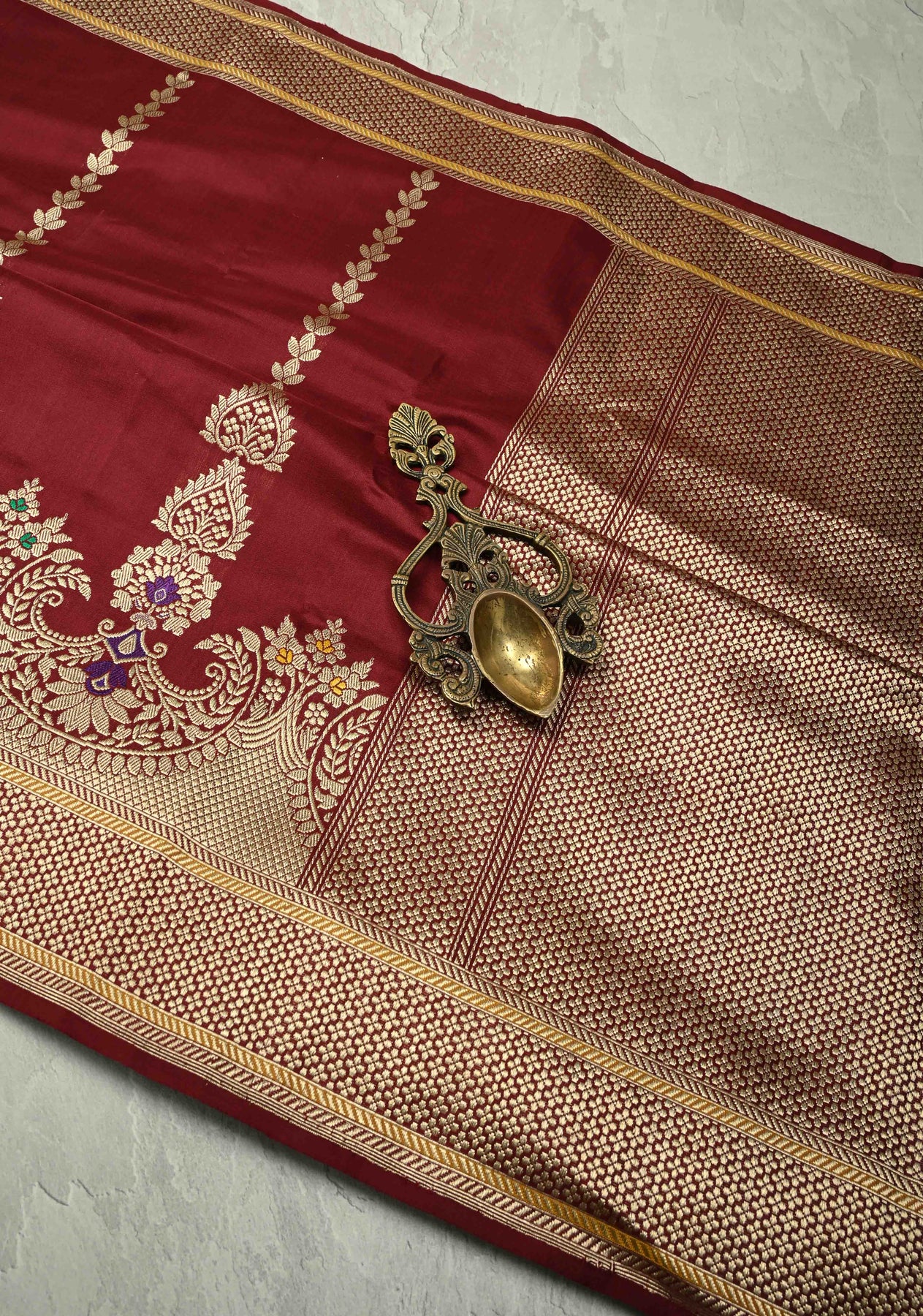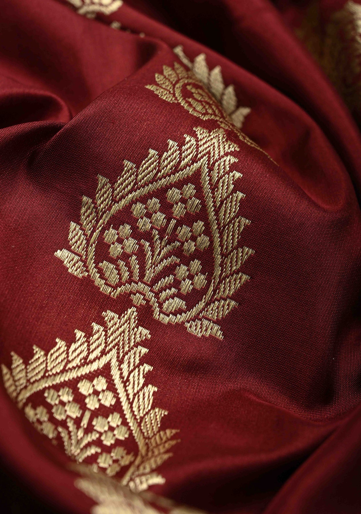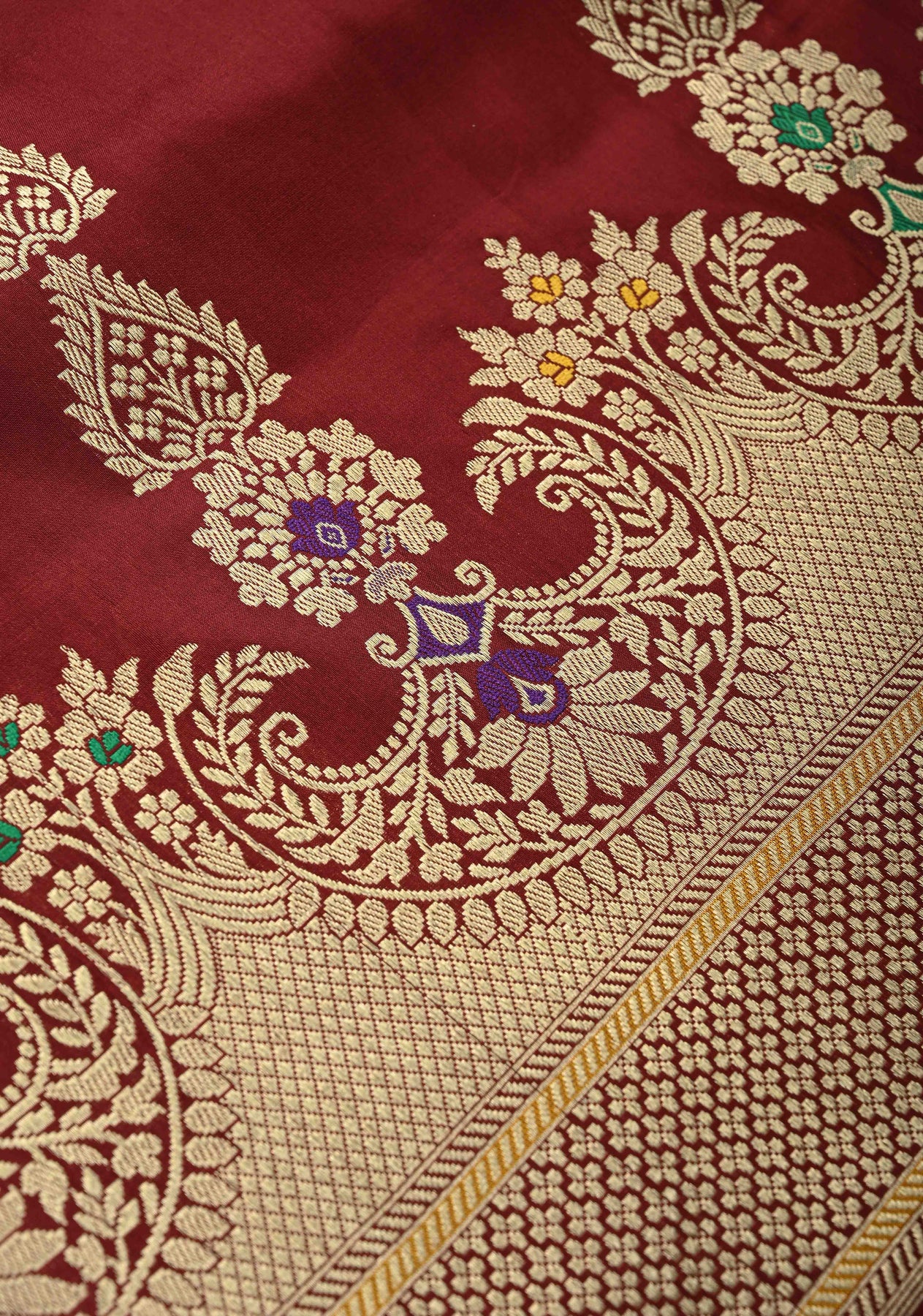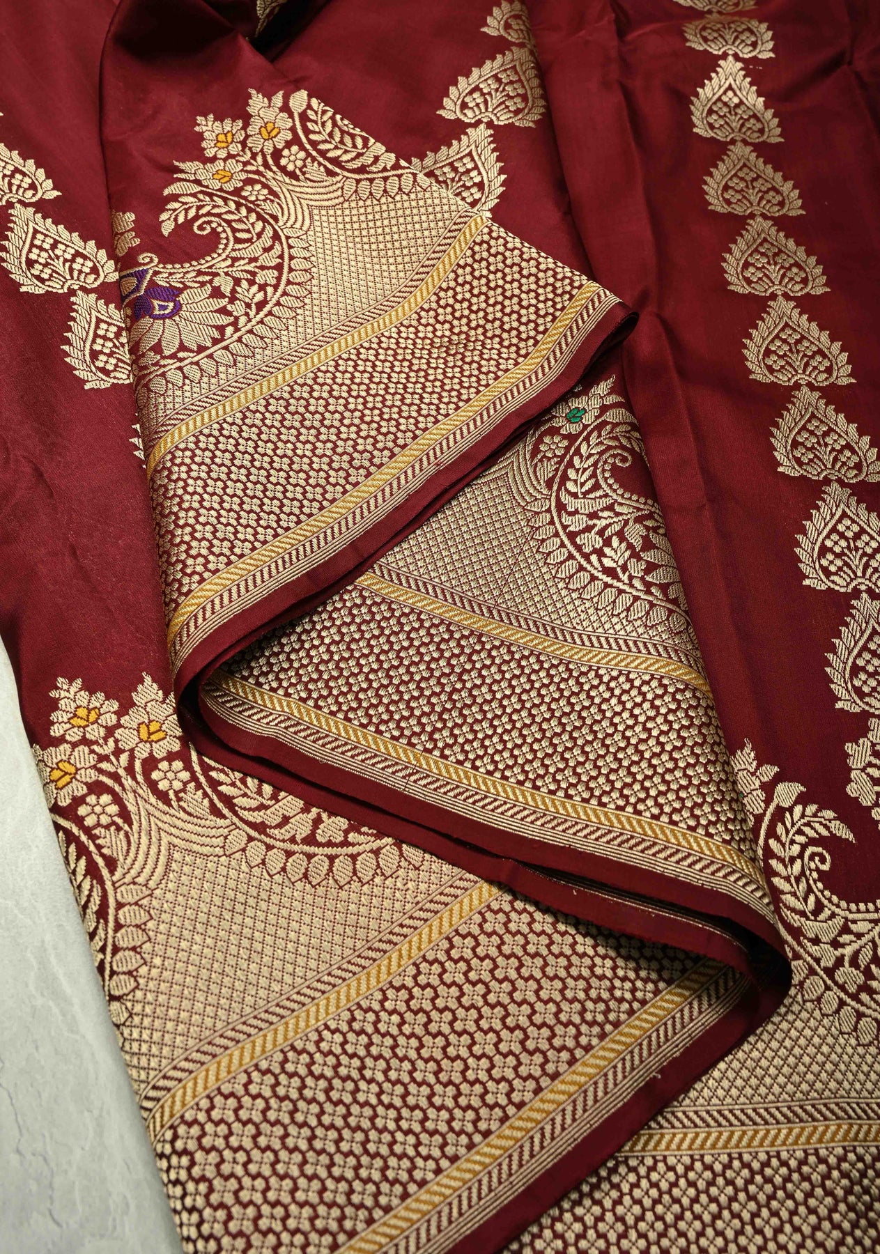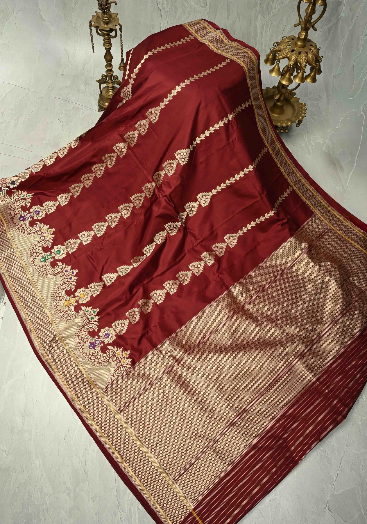 Chocolate Brown Banarasi Pure Katan Silk Saree with Zari Detailing and Meenakari Ornate Scallop Border| SILK MARK CERTIFIED