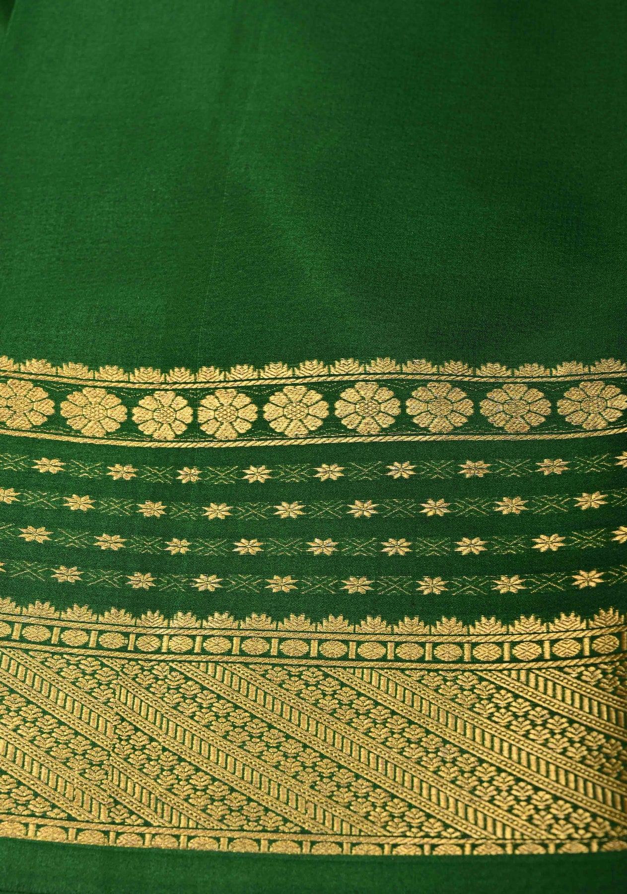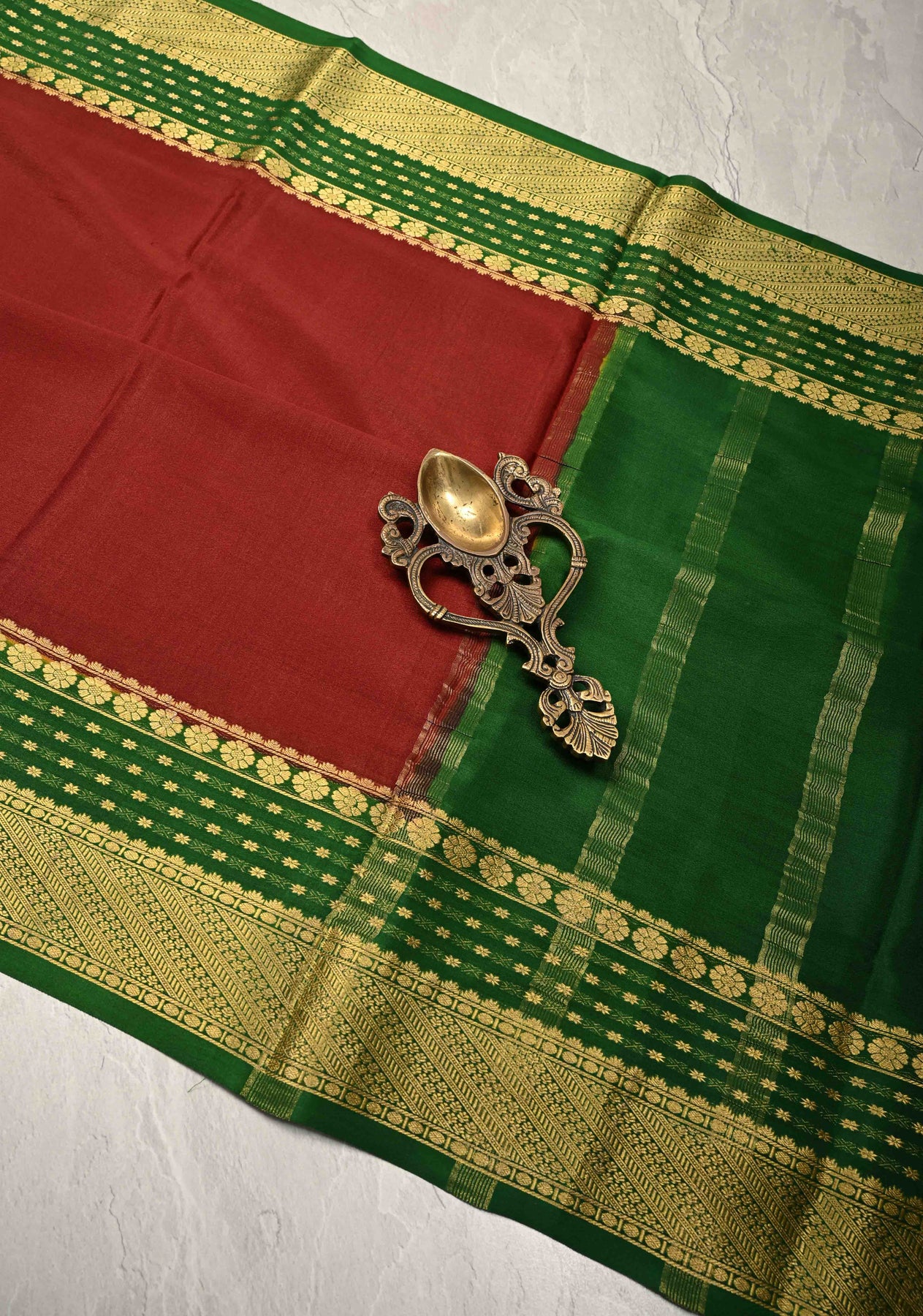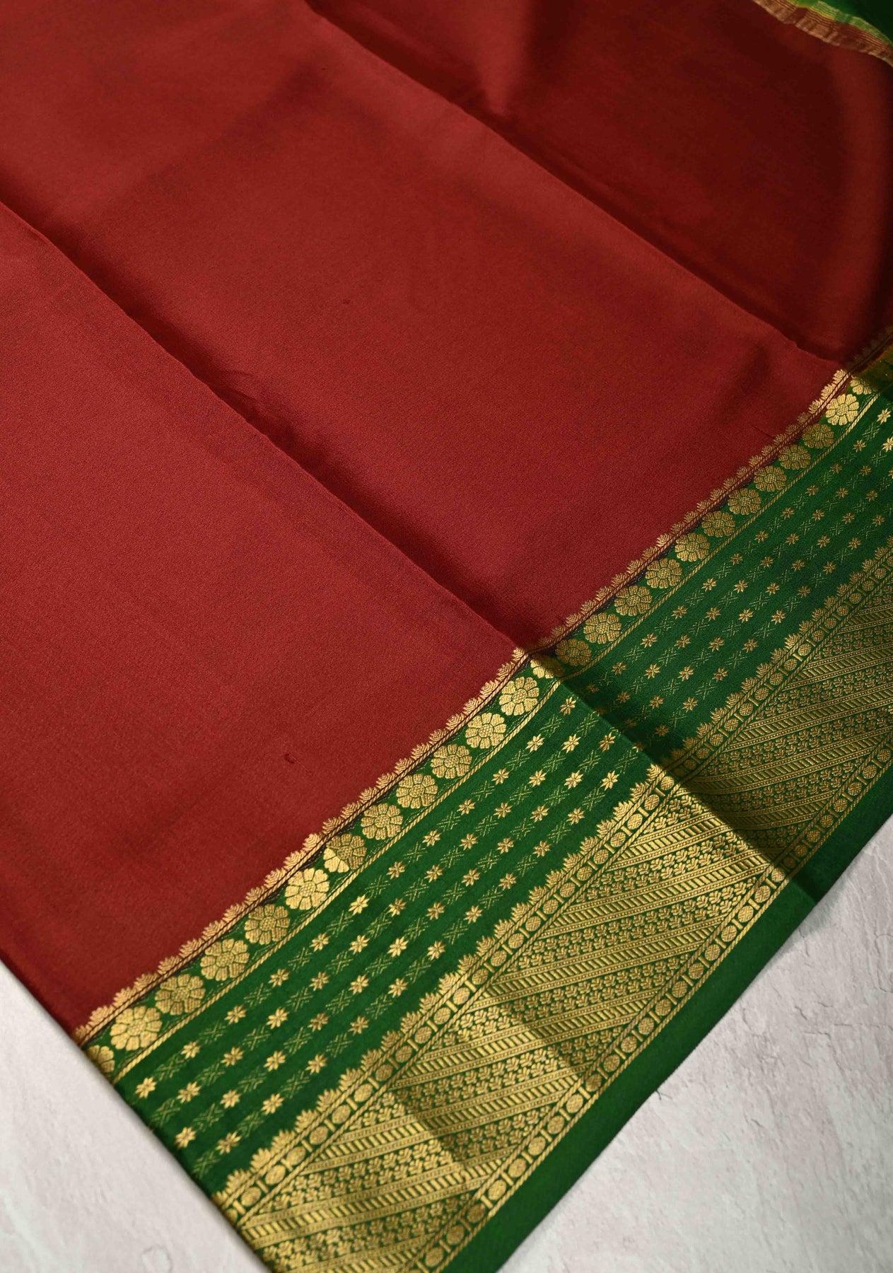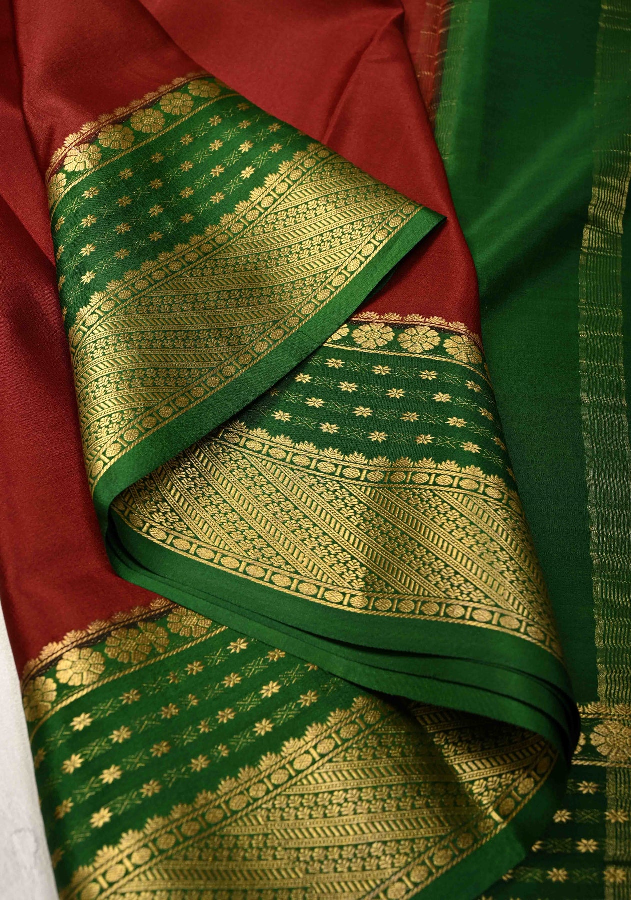 This Coffee Brown Mysore Silk Saree with Contrast Zari Borders is a warm and elegant choice for traditional occasions. Crafted from pure Mysore silk, the saree features a coffee brown hue that exudes sophistication and subtle charm. The contrasting zari borders, woven in shimmering gold tones, beautifully highlight the saree’s luxurious texture and add a regal finish. Lightweight and smooth, this saree drapes gracefully, making it perfect for weddings, festive events, and cultural celebrations where timeless style is desired.