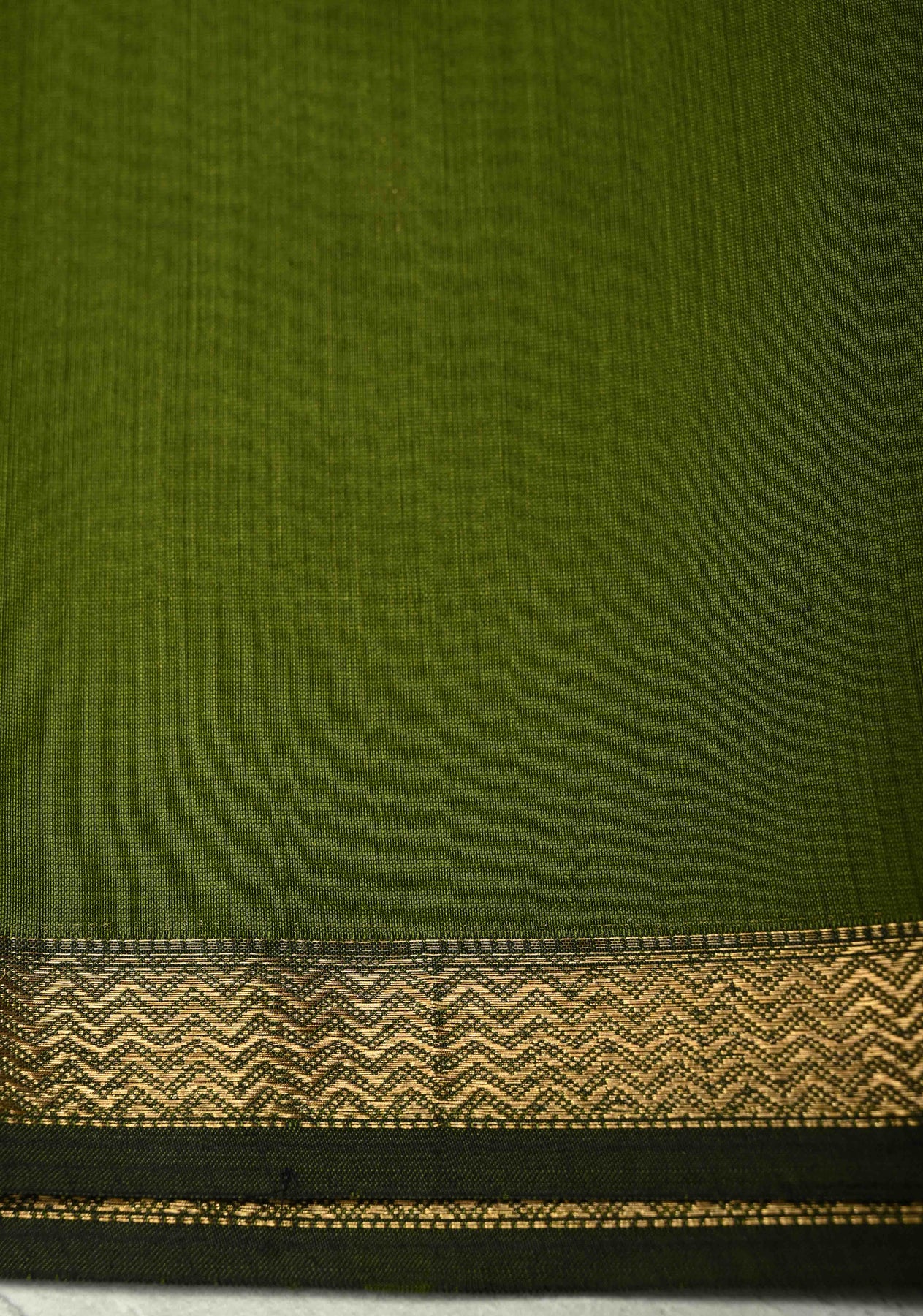 Embrace understated elegance with this Collard Green Maheswari Cotton Silk Saree, featuring delicate zari buttas and a minimalistic border that highlights its sophisticated charm. Handwoven with precision, this saree offers a lightweight, airy texture ideal for both casual and festive occasions.