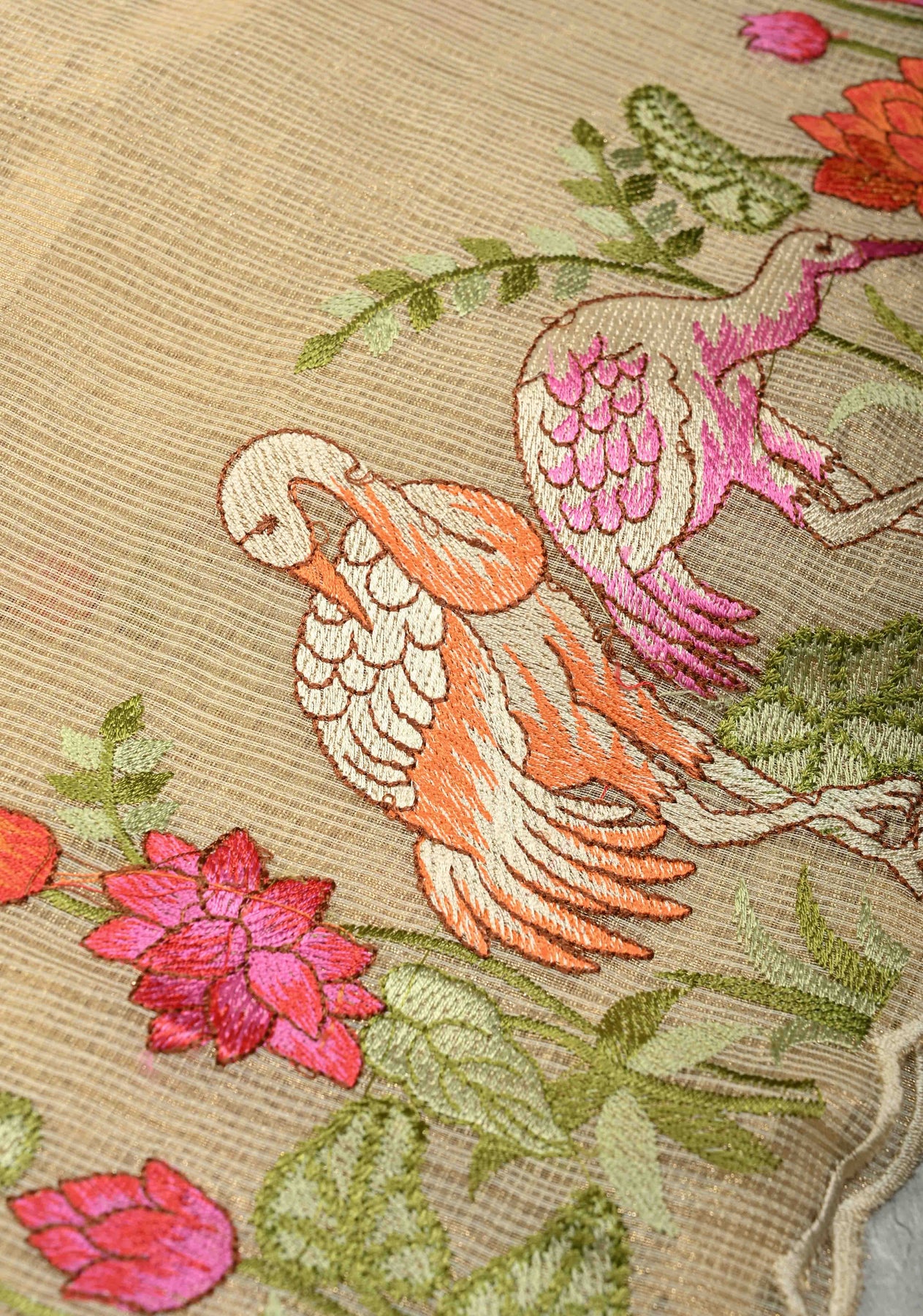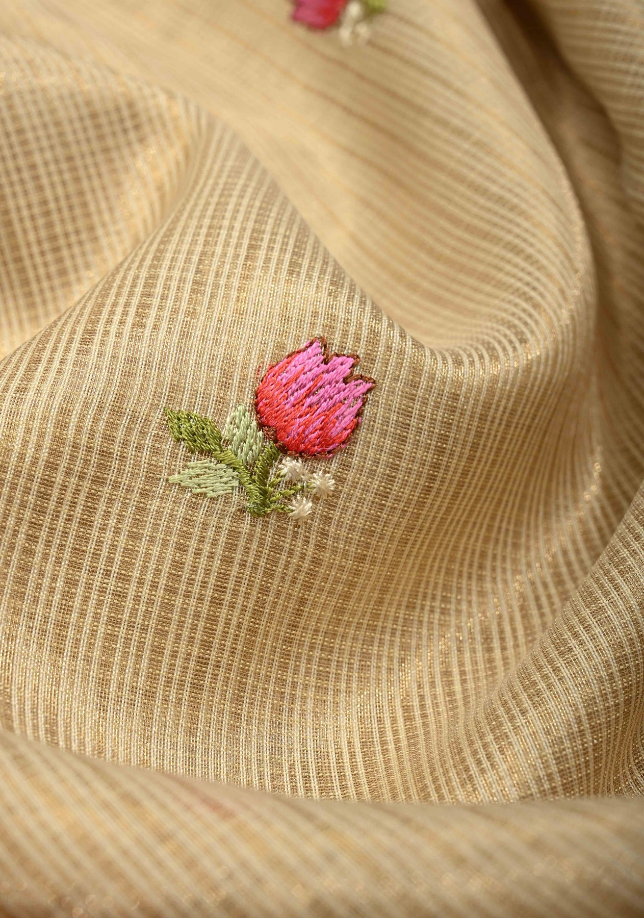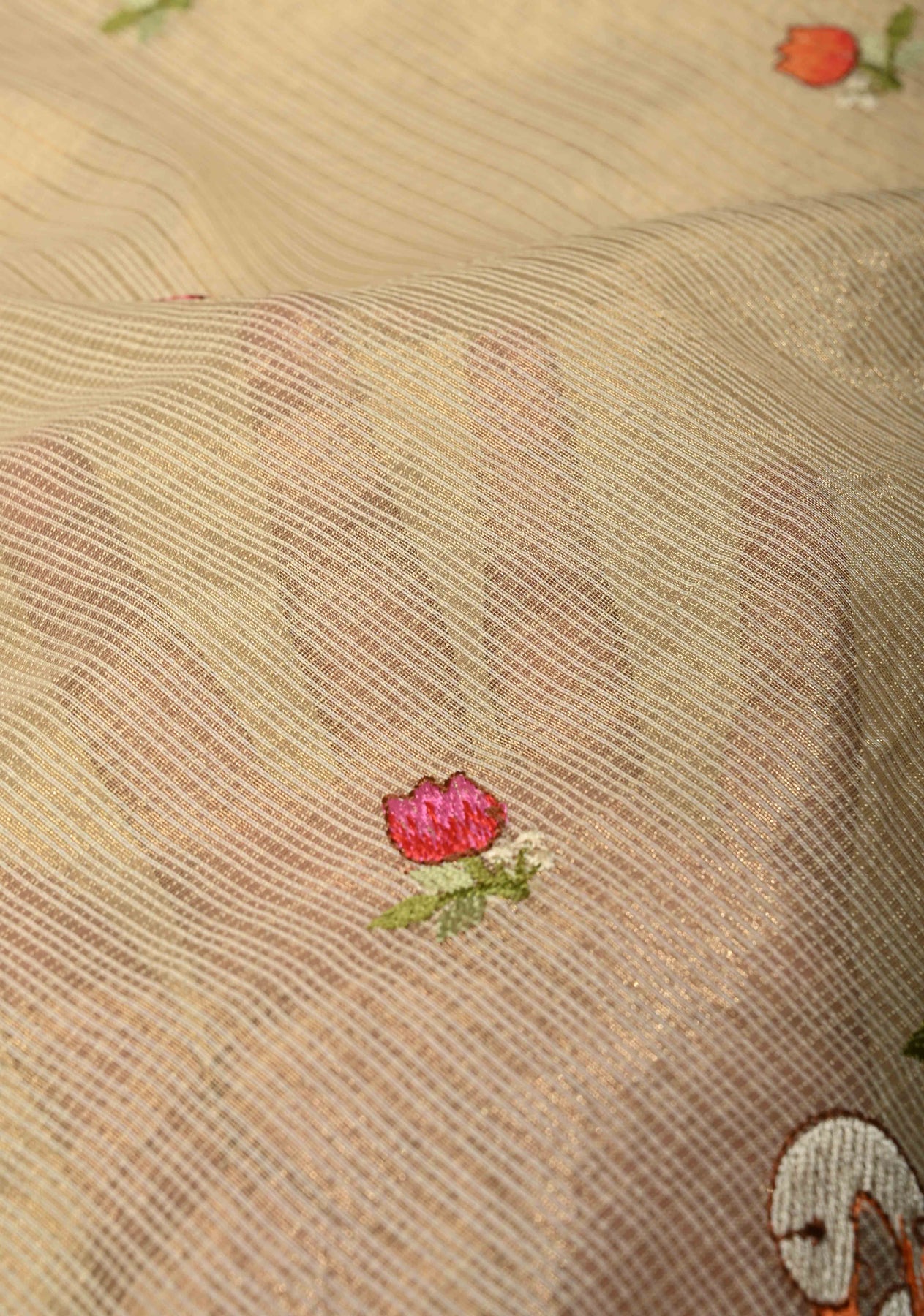 Cream Meenakari Embroidery on Kota Doria Tissue Cotton Saree with Scallop Border