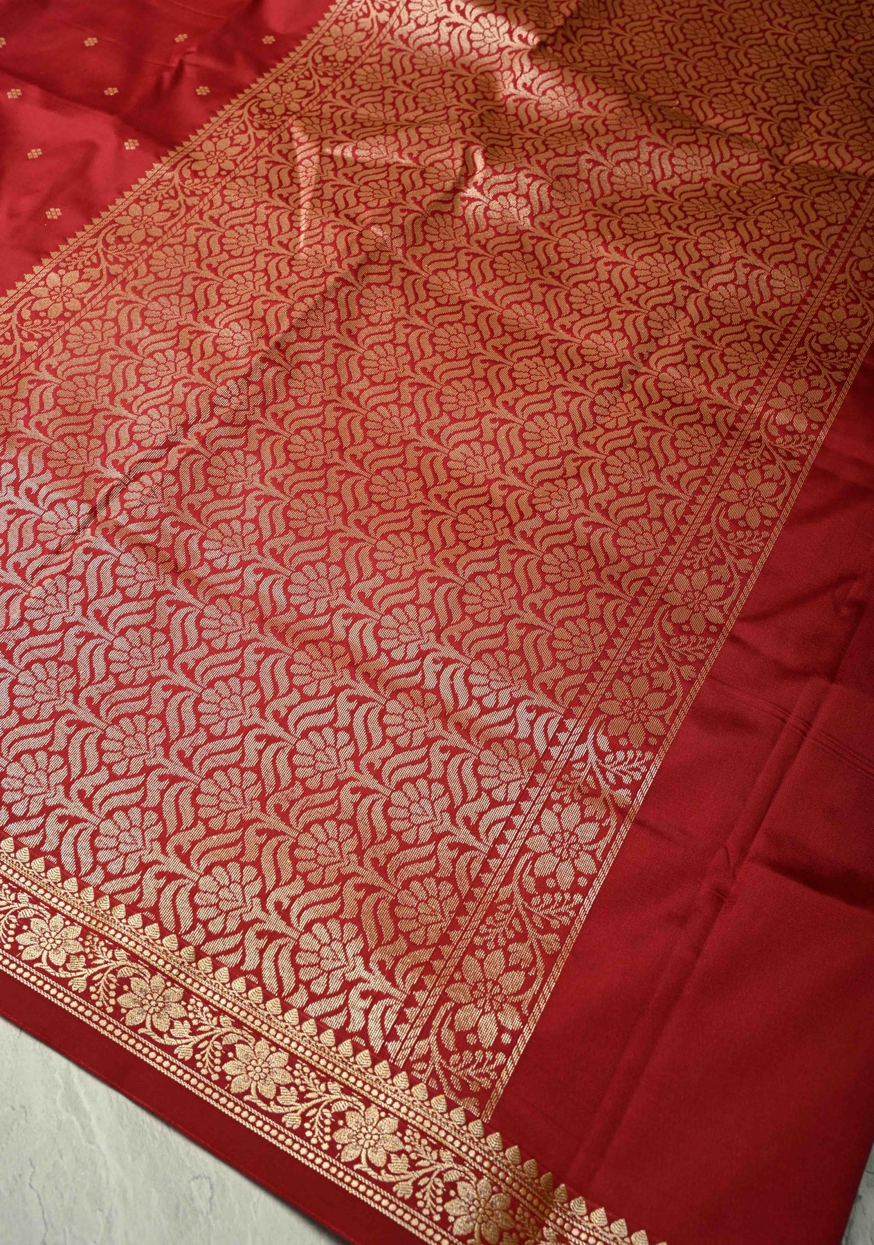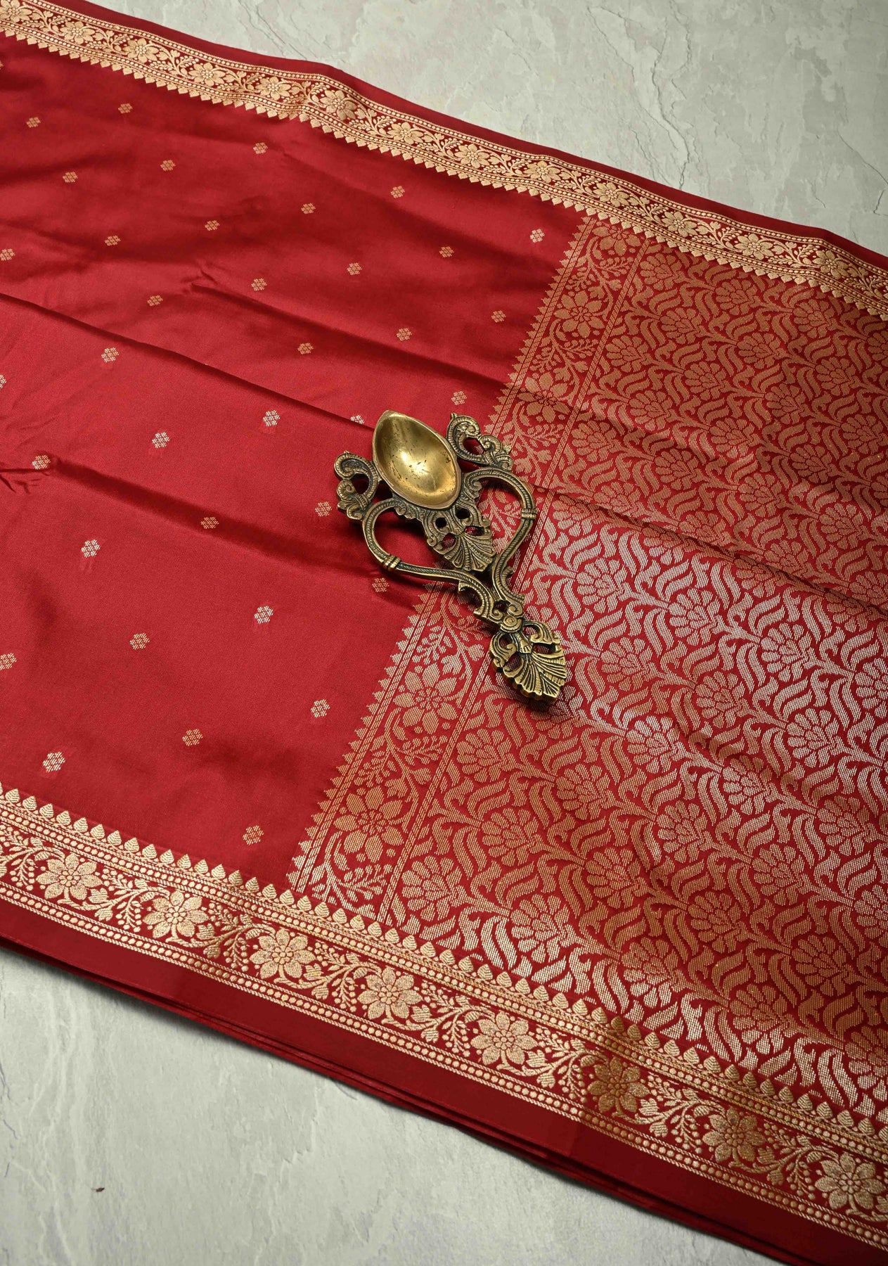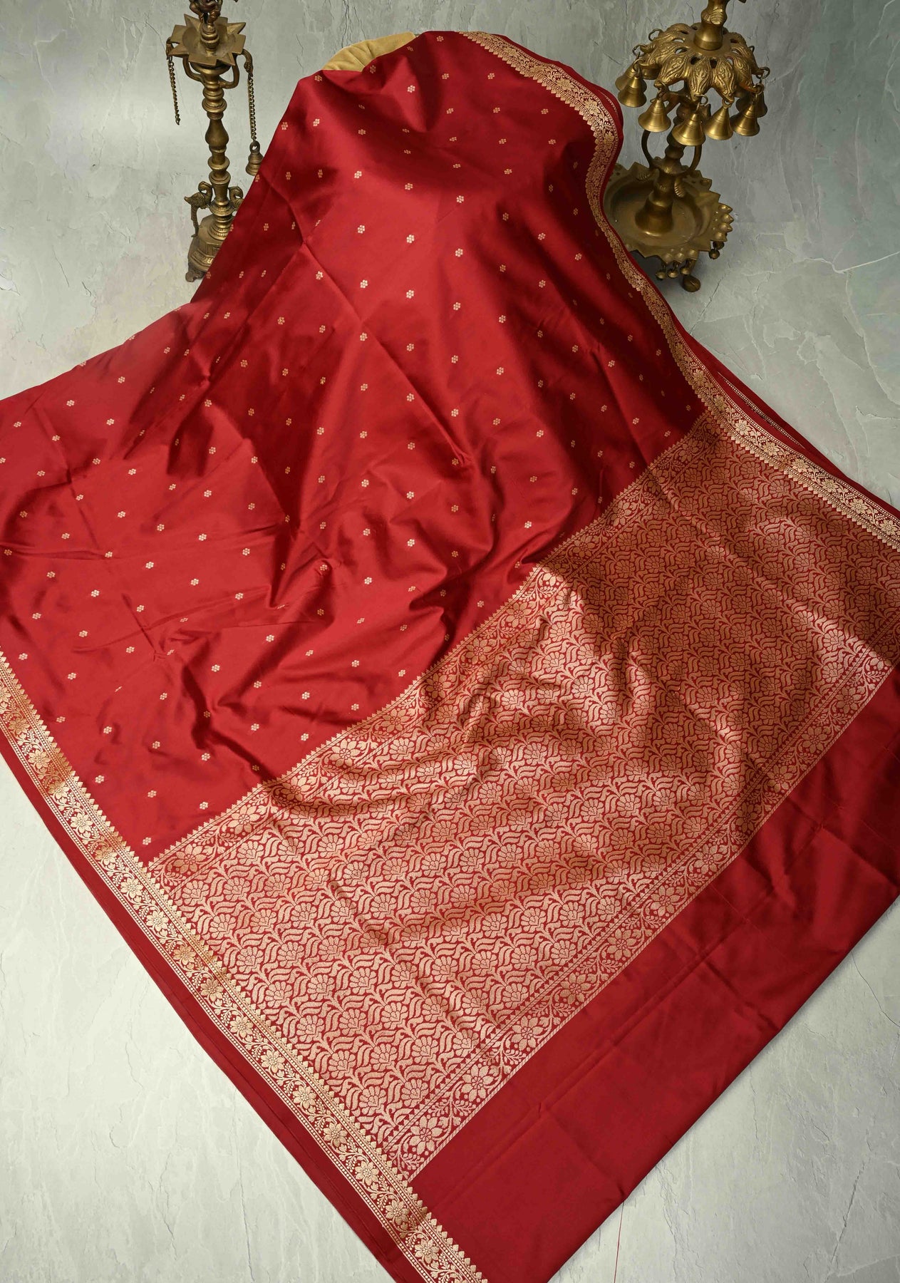 This Crimson Red Semi Silk Saree is a striking combination of vibrant color and traditional elegance. Crafted from semi-silk, it features intricate chunri buttis, which add a rich, ethnic charm to the saree. The crimson hue is both eye-catching and timeless, while the minimal zari border offers a subtle hint of shimmer, adding a refined touch to the design. Light yet luxurious, this saree is perfect for everyday wear, festive occasions, and intimate celebrations, offering a beautiful balance of modern simplicity and classic beauty.