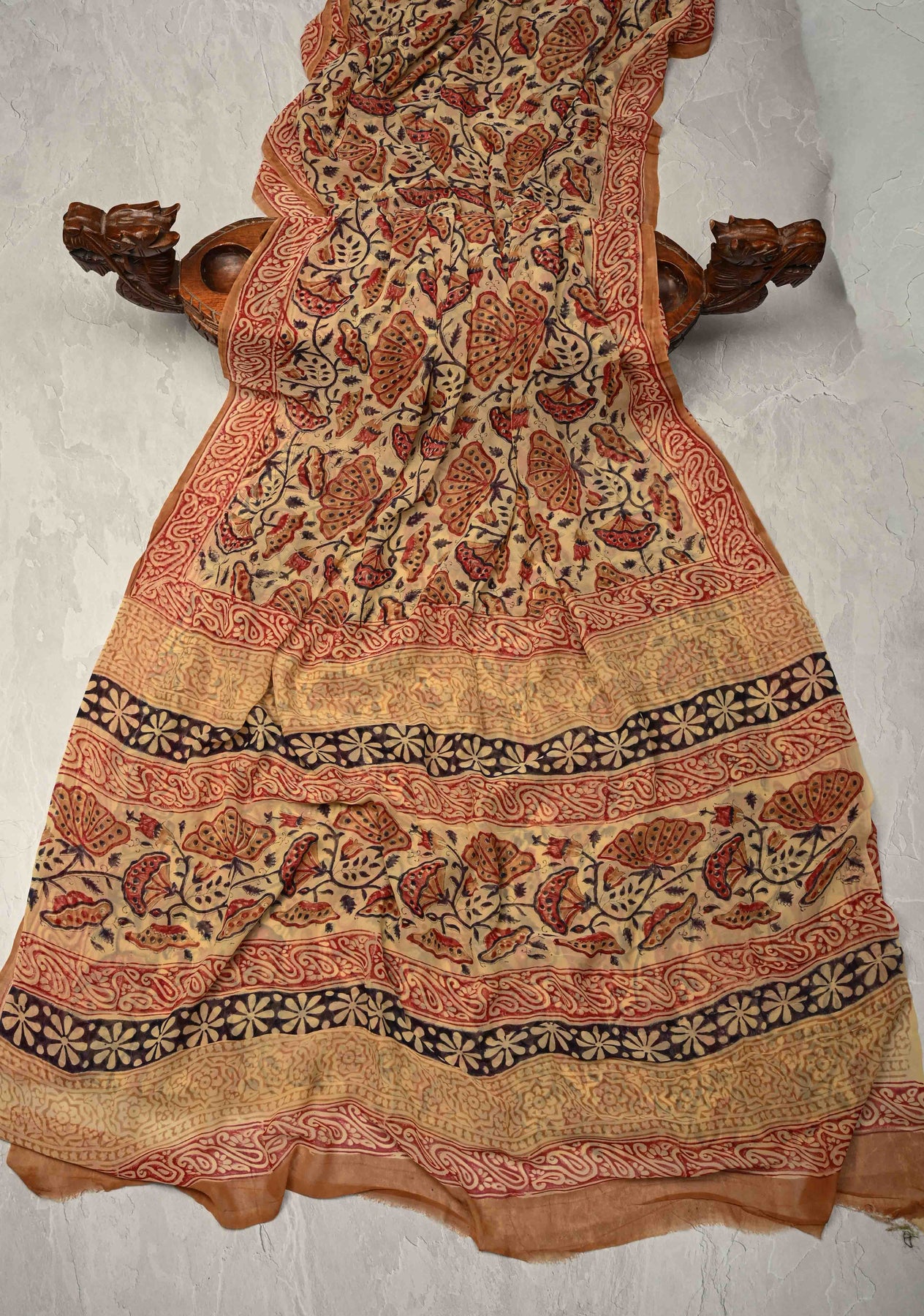 This Dark Beige Georgette Saree is a graceful expression of traditional craftsmanship, adorned with exquisite Sanganeri hand block prints. The soft, flowing georgette fabric offers a flattering drape, while the earthy beige tone adds understated elegance. Hand-printed with intricate floral and paisley motifs, it brings a classic charm suitable for festive occasions, cultural gatherings, or sophisticated daywear. Lightweight and breathable, this saree effortlessly combines comfort with timeless ethnic appeal.