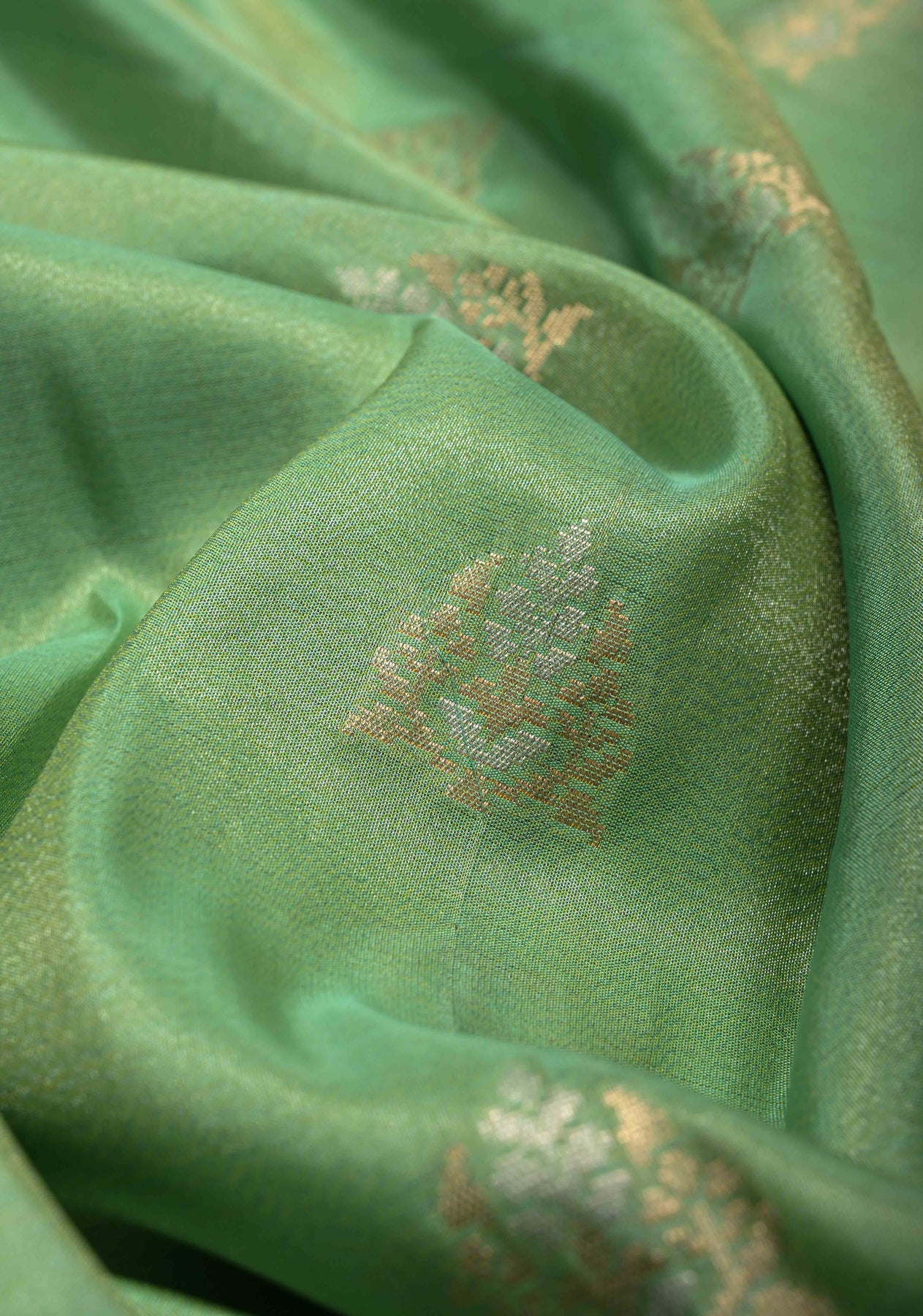 Make a sophisticated style statement with this Dark Sage Green Banarasi Katan Tissue Silk Saree, crafted for those who appreciate timeless elegance and fine craftsmanship. The rich Katan tissue silk lends a soft, lustrous texture with a subtle shimmer that beautifully enhances the deep sage green hue.
