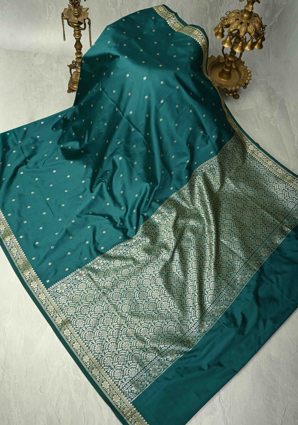 The Dark Teal Semi Silk Saree with Chunri Buttis and Minimal Zari Border is a perfect combination of depth and elegance. The dark teal color provides a striking contrast to the traditional chunri butti design, which is scattered delicately across the fabric, adding a sense of heritage and charm. The minimal zari border enhances the saree with a soft gleam, maintaining its understated sophistication. Crafted from premium semi-silk, the fabric drapes beautifully, making it an ideal choice for evening events, family gatherings, or festive occasions where elegance is key without being too ornate.