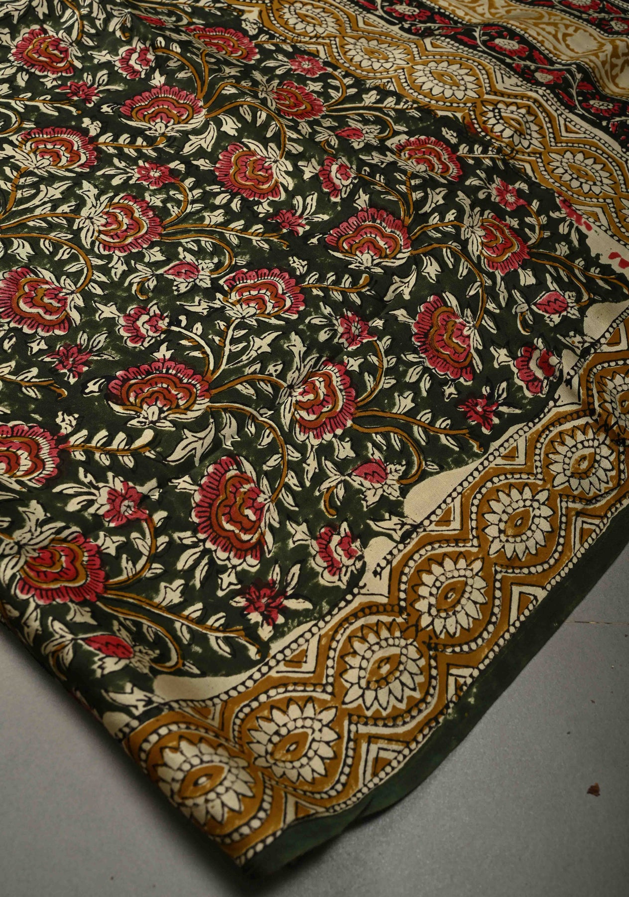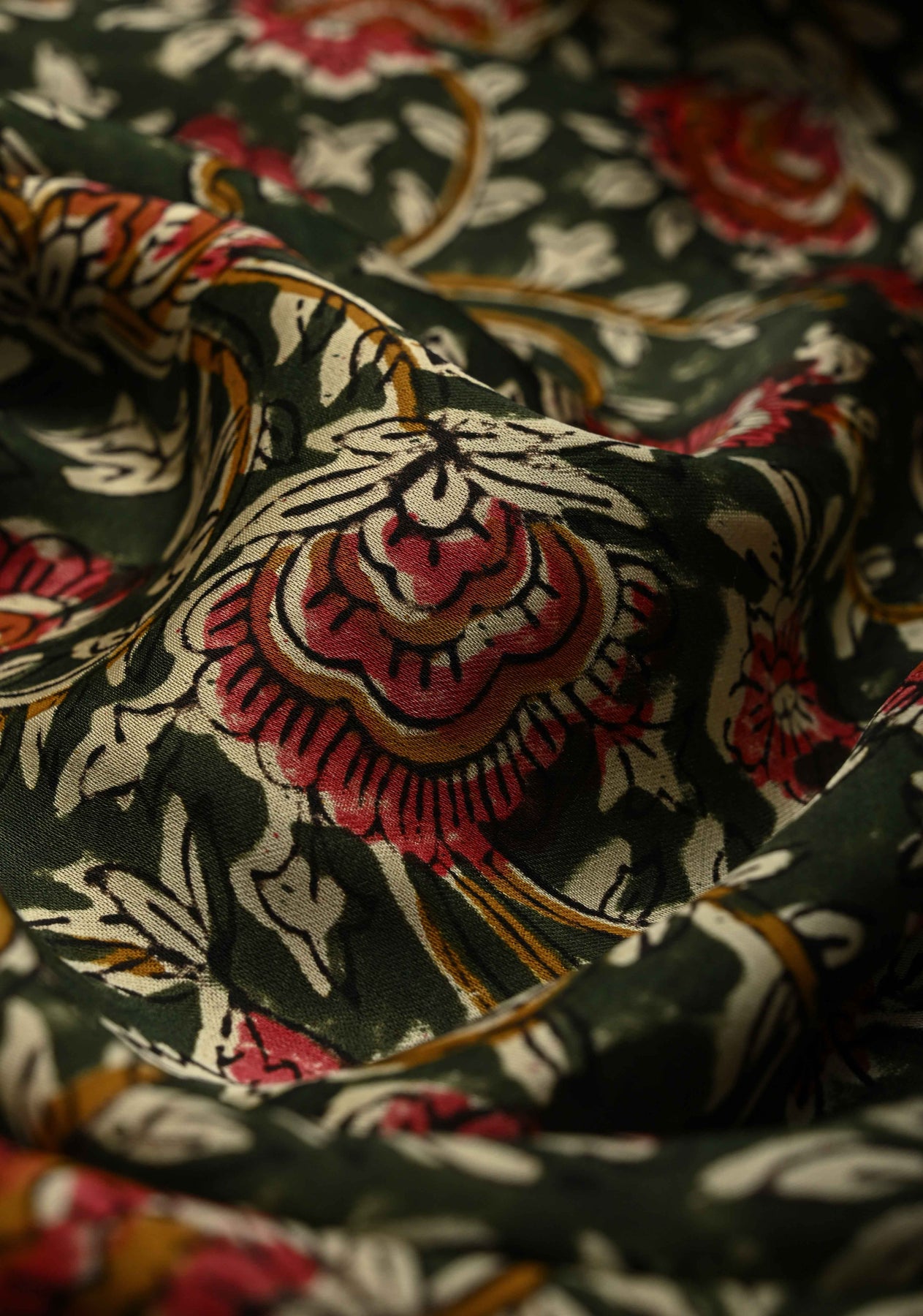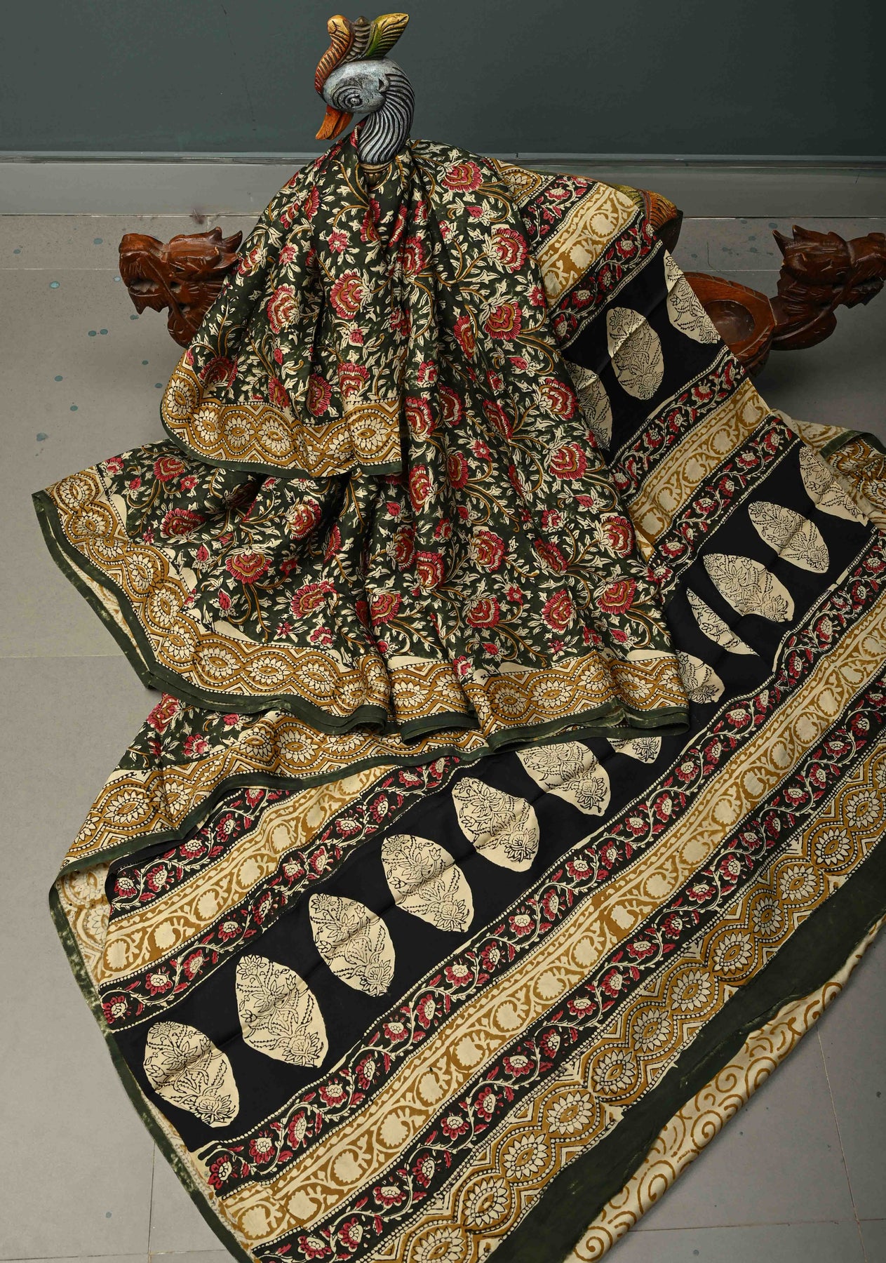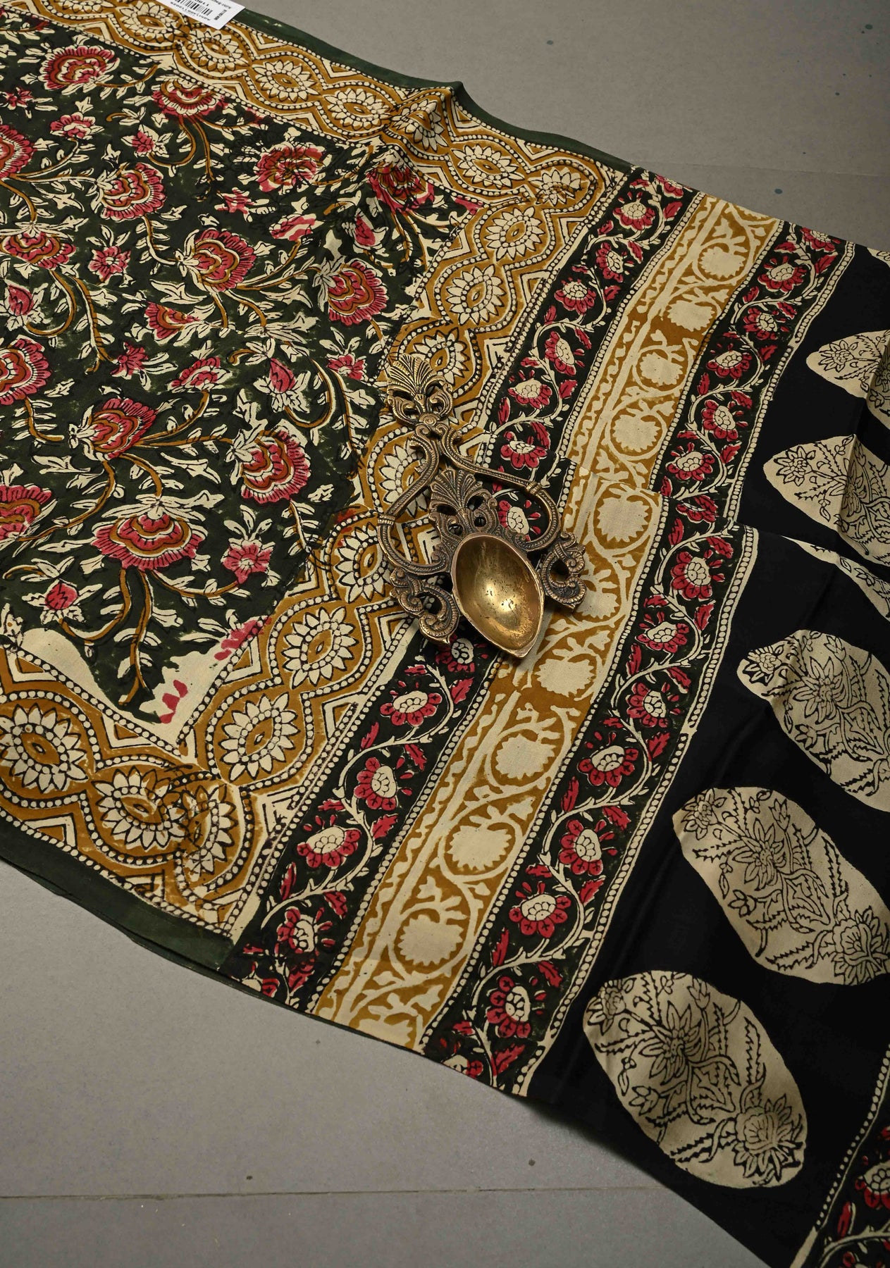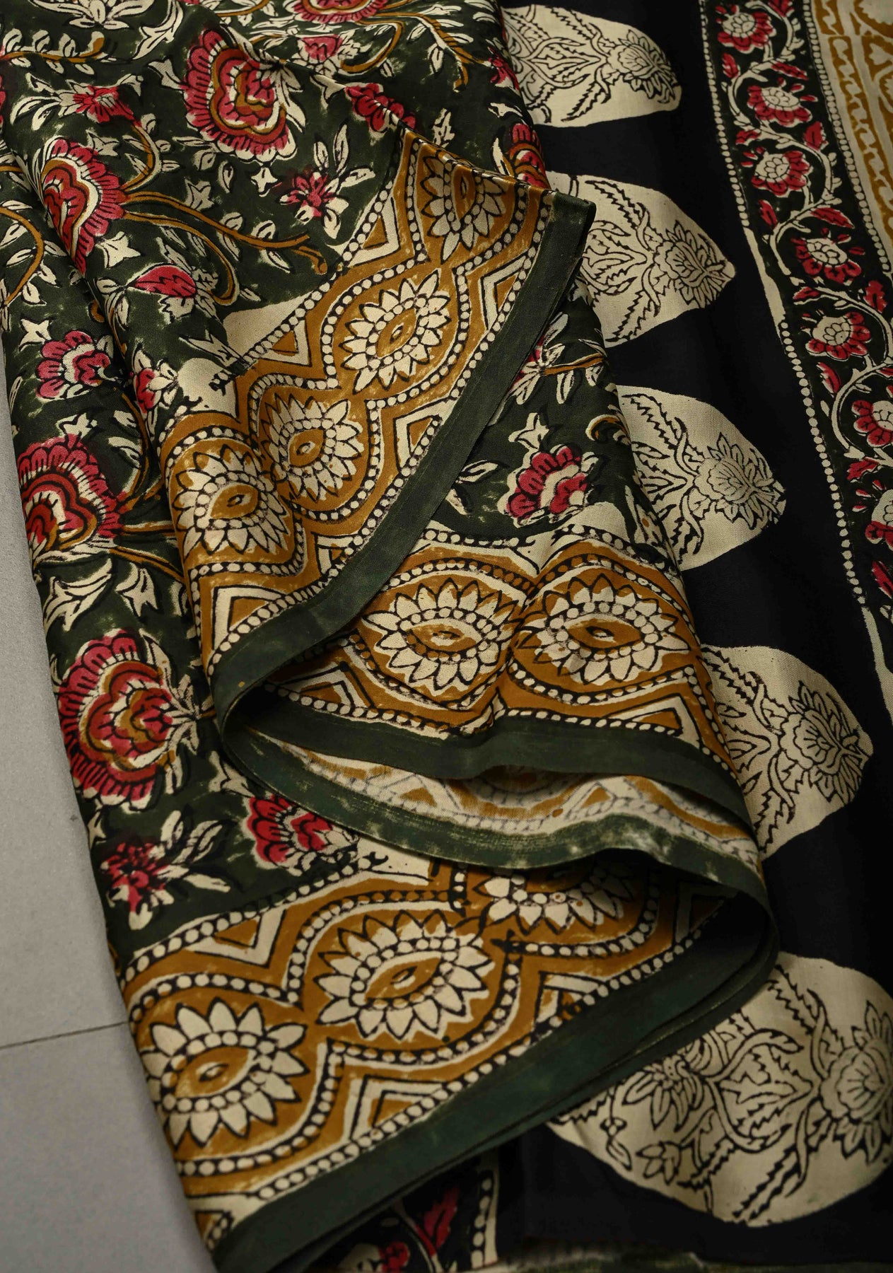 Deep Green Modal Silk Saree with Sanganeri Block Print is a perfect blend of sophistication and traditional artistry. Crafted from premium modal silk, this fabric offers a smooth, lightweight texture with a graceful drape, making it comfortable yet elegant. The rich deep green base beautifully enhances the intricate Sanganeri hand block prints, known for their detailed motifs and heritage craftsmanship. Ideal for sarees, suits, or dupattas, this piece adds a touch of timeless elegance to festive occasions, celebrations, or everyday ethnic wear, celebrating the legacy of Indian hand-block printing in a modern, stylish way.