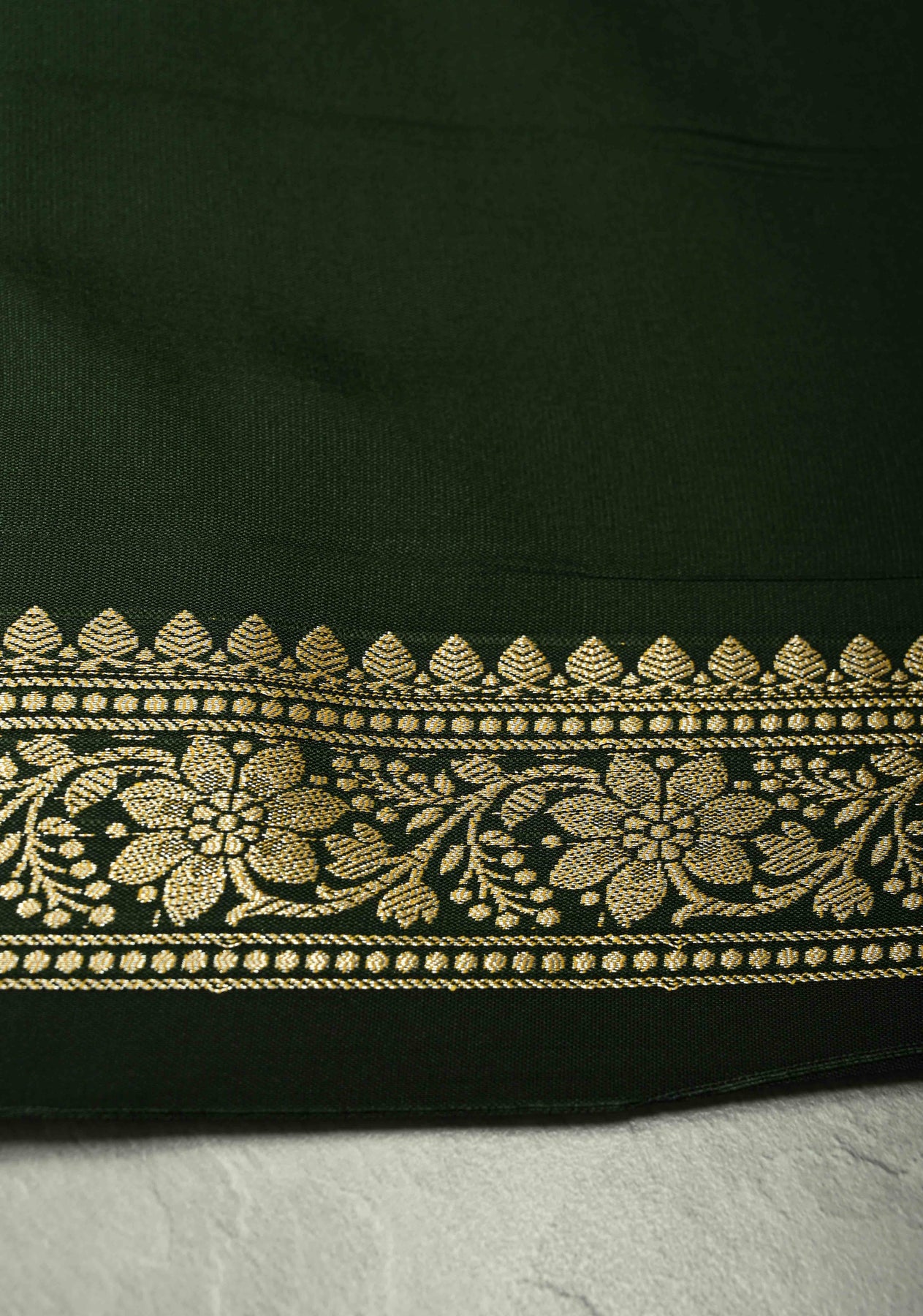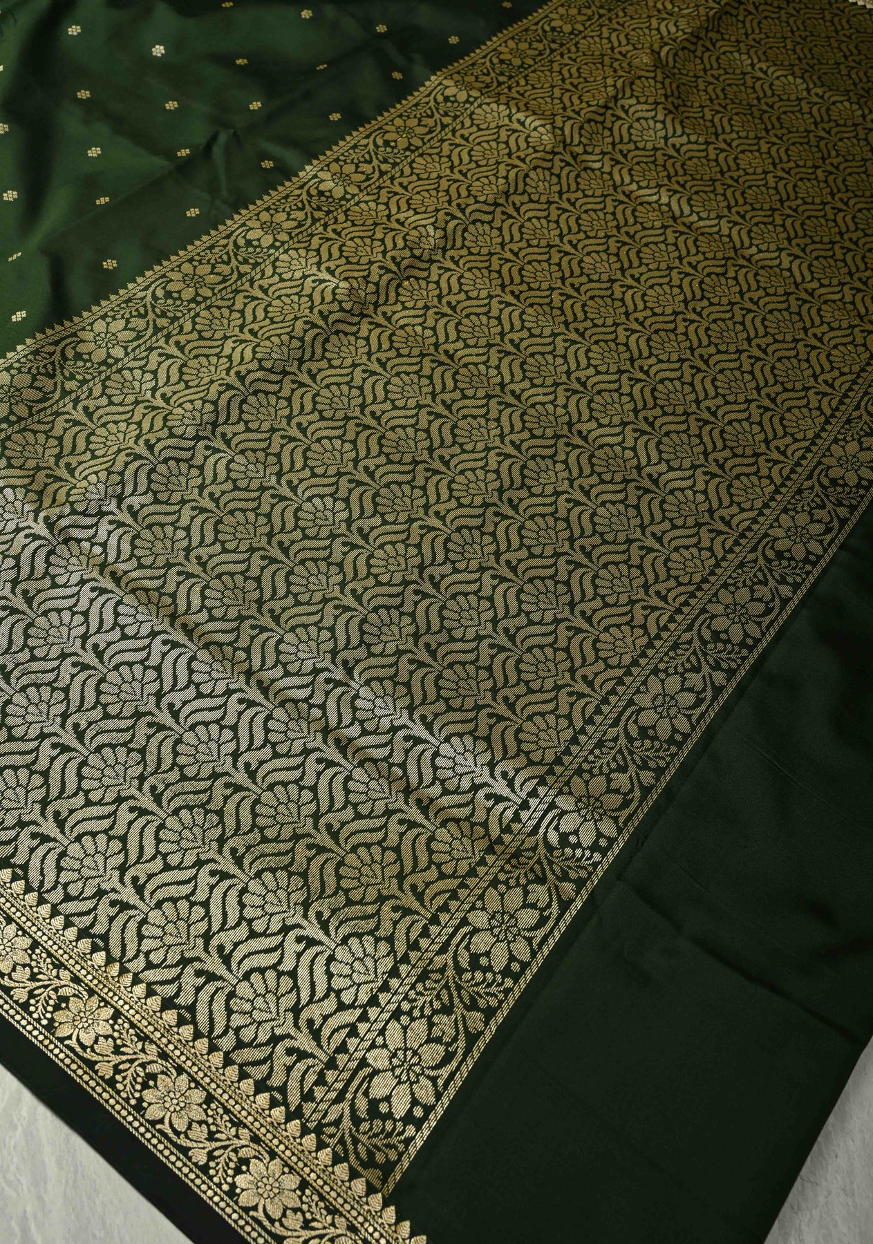 Deep Green Semi Silk Saree with Chunri Buttis and Minimal Zari Border