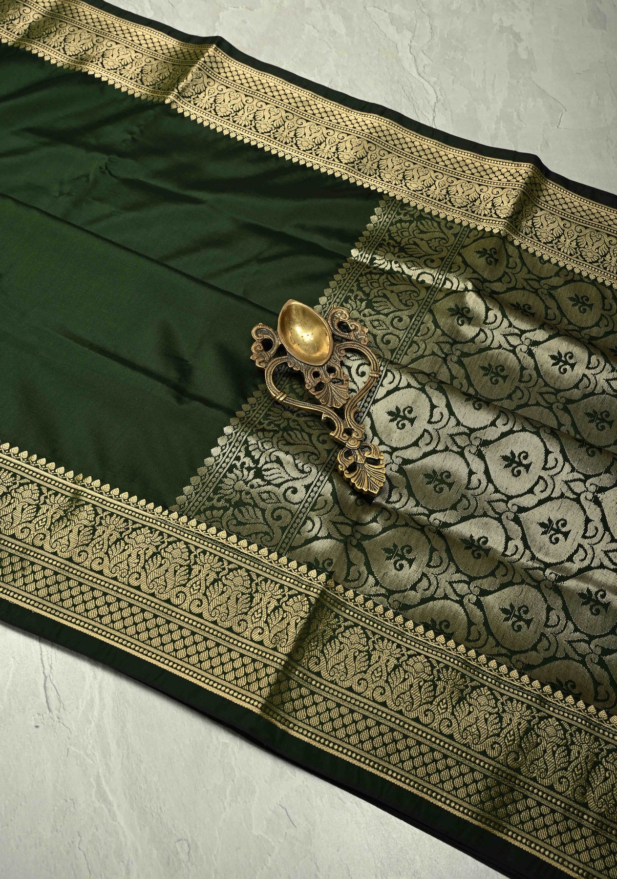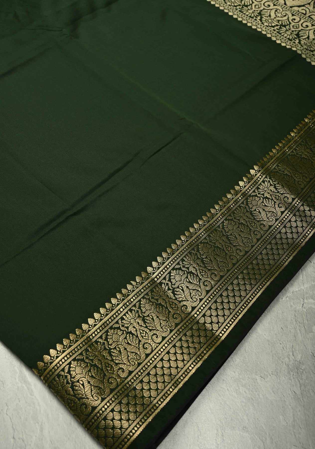 The Deep Green Semi-Silk Saree with Zari Border is a perfect blend of traditional elegance and modern sophistication. Made from semi-silk fabric, it offers a soft, glossy texture and a comfortable drape. The deep green shade symbolizes grace and prosperity, while the exquisite zari border adds a luxurious golden shimmer, making it ideal for weddings, festive occasions, and cultural celebrations. Pair it with a contrasting blouse and gold jewelry for a timeless, regal look.